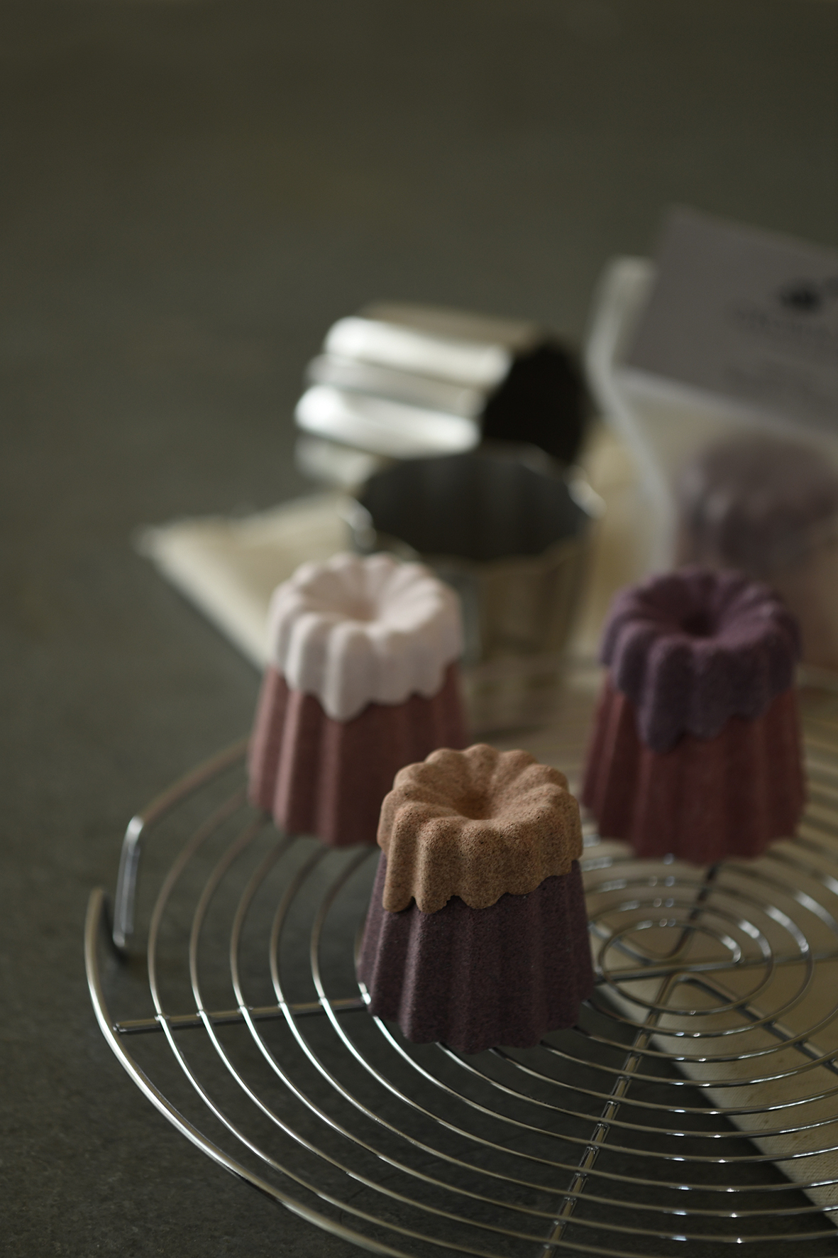 大人かわいい"カヌレ型のバスフィズ。お湯に溶けると、上品な香りが広がり、日常を忘れさせるような特別なバスタイムを演出します。
