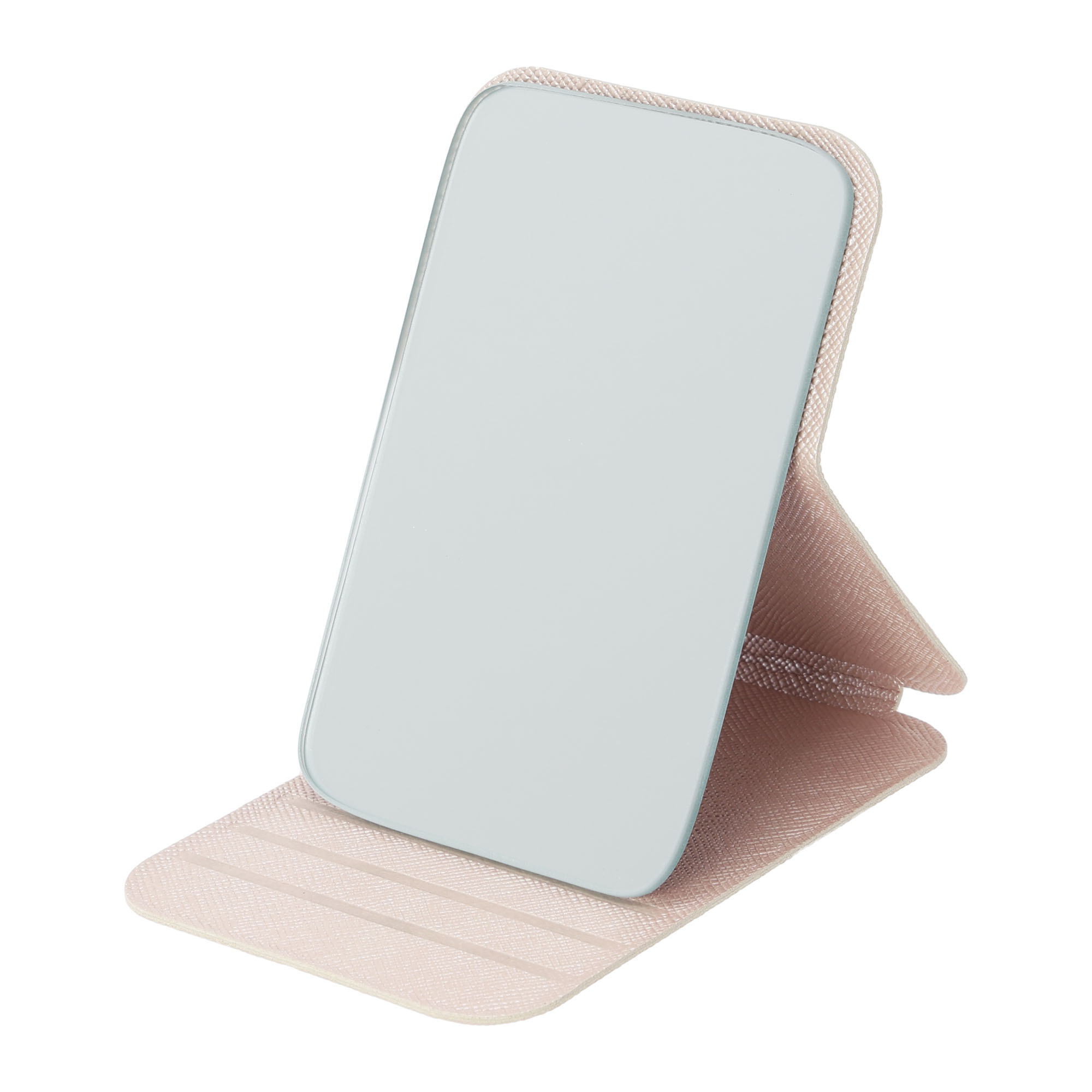 手のひらサイズのコンパクトでスリムな折り畳み式スタンドミラー。 細やかな型押しによりラグジュアリーな質感を実現した「シルエット」シリーズです。