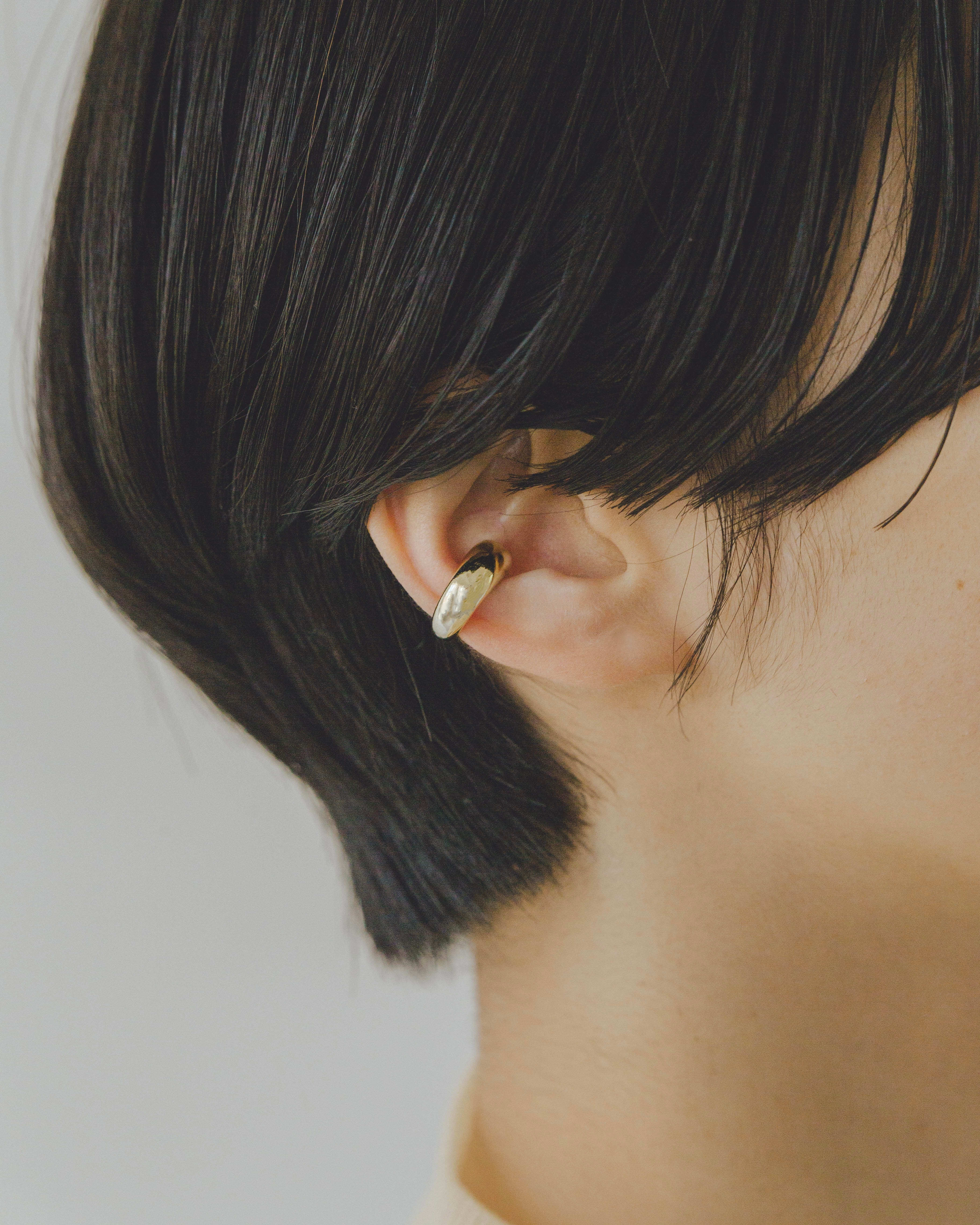 収まりの良い程よいボリューム感。 ボリュームがありながら小ぶりで女性らしさを演出。 ぷっくりとした形が単体でつけてもポイントになります。 また、お手持ちのイヤリングやピアスと合わせやすく、さまざまなコーディネートに活躍してくれるイヤーカフです。