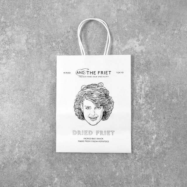 紙袋もアートディレクター平林奈緒美氏によるデザイン、ヨーロッパのイラストレーターAnje Jager氏によるイラストが描きおろされた白い紙袋。おもて面にはキャラクターの顔が、裏面には後頭部が描かれています。 ギフトボックスを入れてお渡しするのにぴったり!
