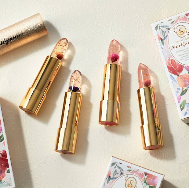 透明なのに塗るとピンク色に変化し、世界に1つだけのカラーを生み出してくれる不思議なリップです。またそれだけではなく、中に入っているお花の表情がひとつひとつ異なるガラス細工のようなティントリップです。 本体にお相手のお名前を刻印可能で、贈ったお相手にとって特別なプレゼントになります。