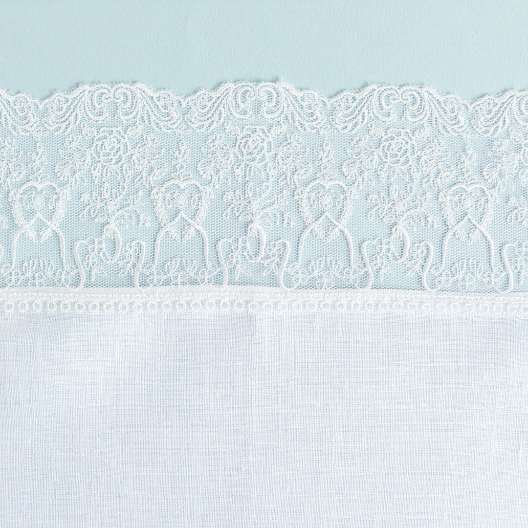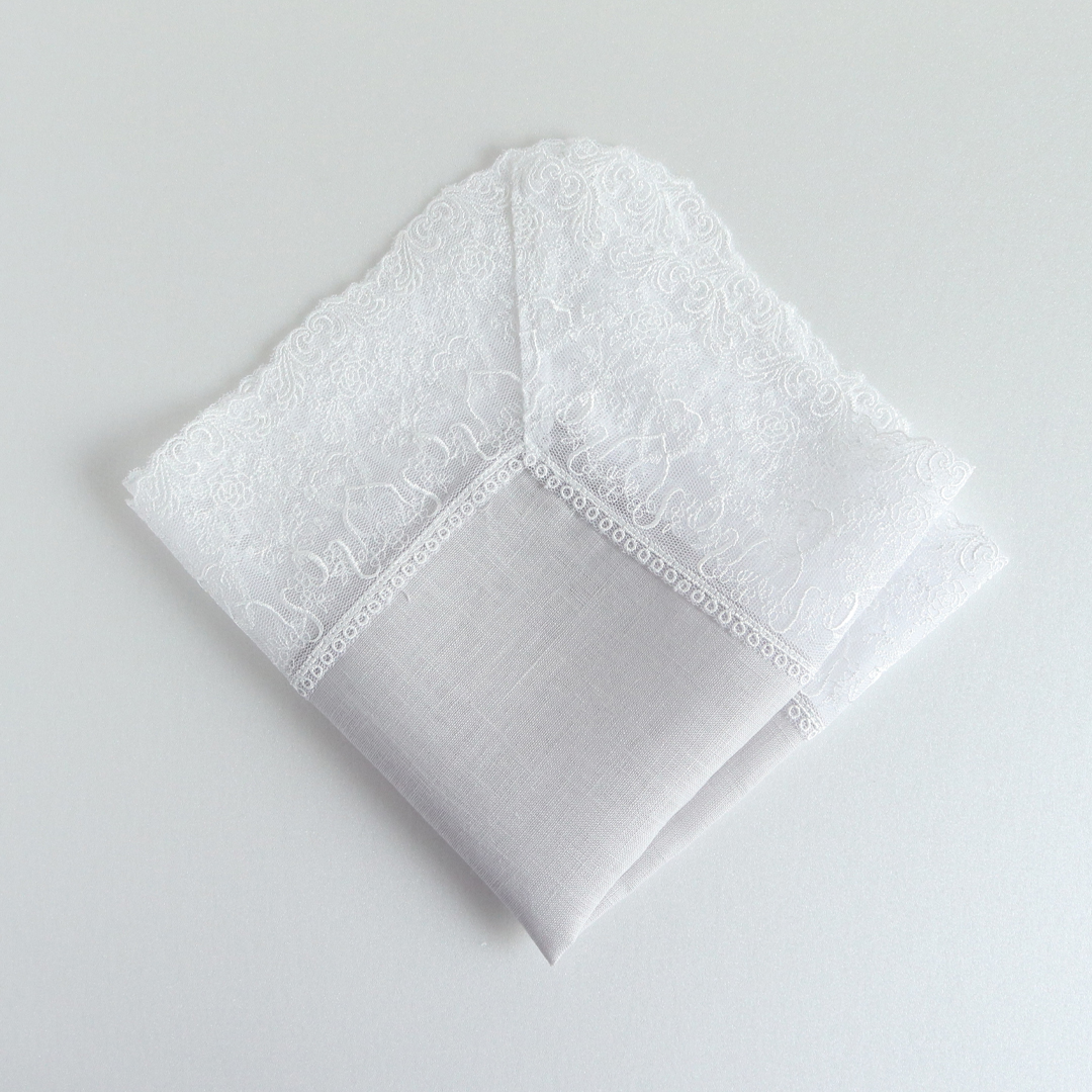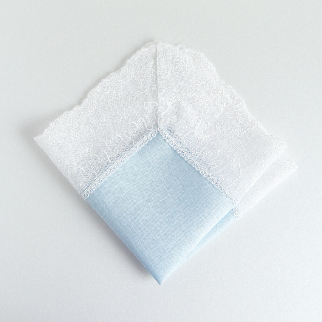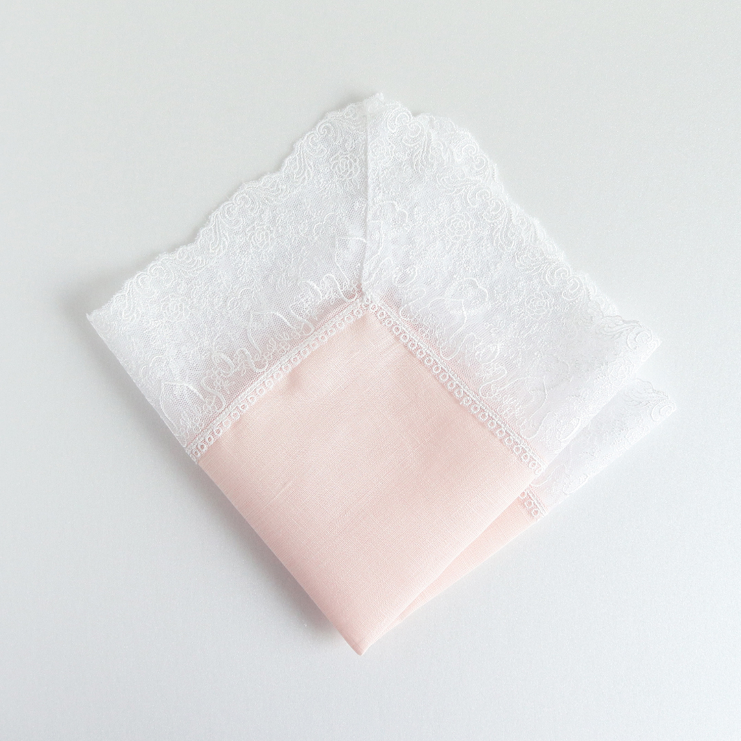 屋号に「リネンストア」を掲げている当店こだわりの「麻」のひざ掛けハンカチ。世界中から選び抜いた上質な麻と、贅沢にあしらった幅広のレースが、 使うたび、手にするたびに優雅な気分へと導いてくれます。