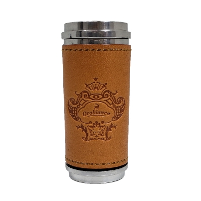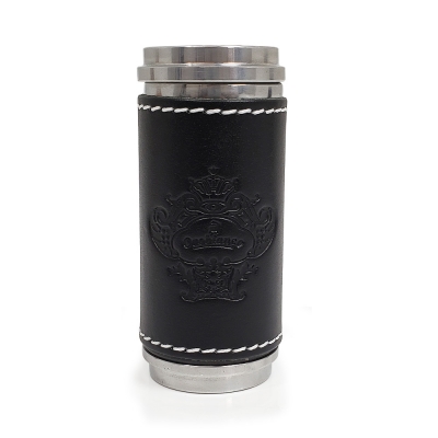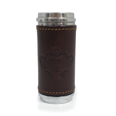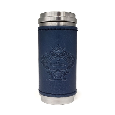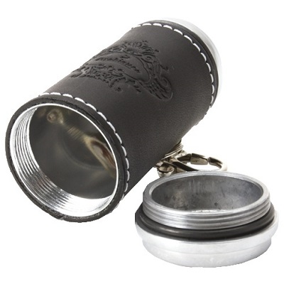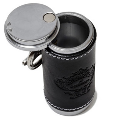 軽量アルミボディに本革巻きを施した大人の灰皿。ナスカン付きで持ち歩きにも便利です。
