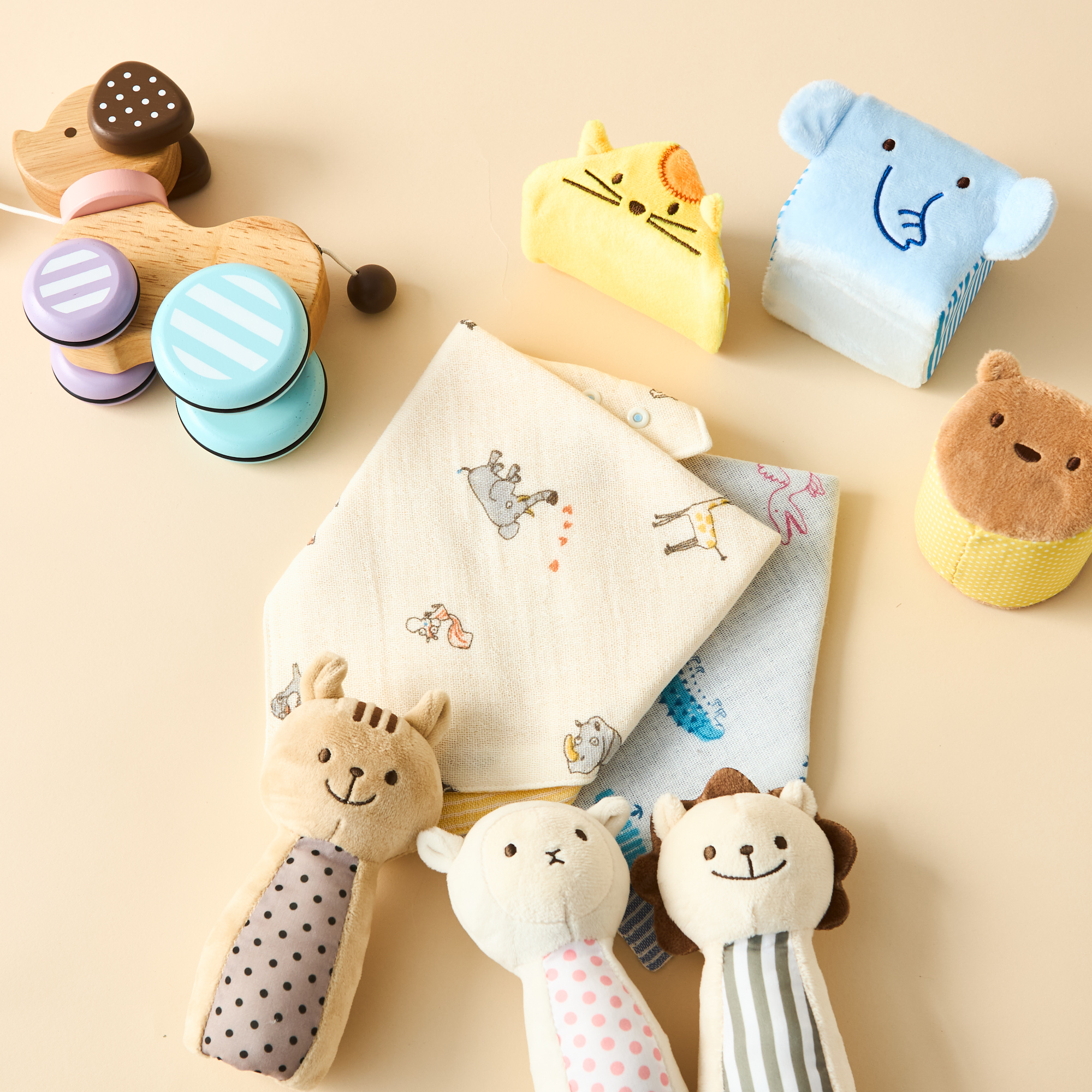 出産祝いギフトへの+αにおすすめです。新生児〜1歳ごろまでの赤ちゃん向けのアイテムをご用意しました。