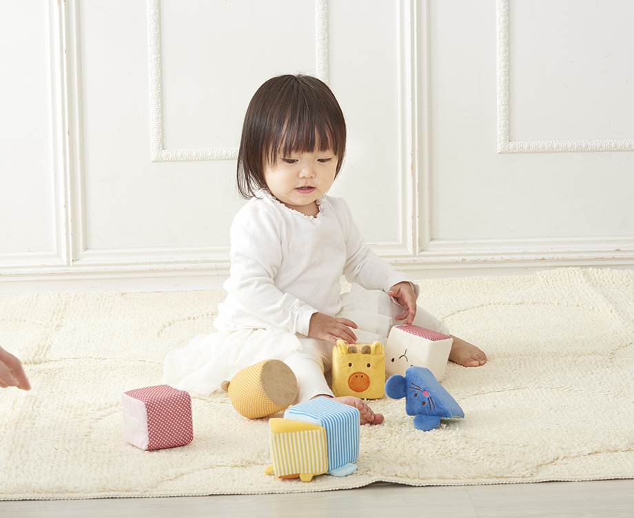 ◼︎赤ちゃんの遊びに合わせて このアニマルブロックは、初めてのおもちゃにぴったりです。 布製のブロックですが、赤ちゃんに合わせた様々な遊びができるのが特徴的です。 最初はブロックをつかんだり、引っ張ったりして遊んで、少し手先が器用になってきたら積んだりして遊ぶことができます。 赤ちゃんの成長に合わせて遊ぶことができるのがうれしいブロックです。 ◼︎衛生面にも 小さい子供は、なんでも舐めたりするので、衛生面も心配なお母さんは多いはず。 もちろんこのアニマルブロックは衛生面にも気を使っています。 エド・インターのおもちゃは日本玩具協会が定める安全基準STマークまたは、欧州規格(CE)の安全基準CEマークの認定を受けています。 そのため、おもちゃの塗料や染料も、食品衛生法に基づく試験で安全性が確認された子供にも安心なものを使用しています。 食品衛生法では、鉛、ヒ素などの子どもにとって有害な物質が含まれていないか、おもちゃに使用されている塗料が規定以上に色落ちしないかなどがチェックされます。 おもちゃには強力な仕上げ剤は使用していないので、子供が口に入れても安全です。 ◼︎肌触り アニマルブロックは優しい肌触りが特徴的です。 布でできているため、ぶつけたりしても痛くないので安心して遊ぶことができます。 アニマルブロックのやわらかい触り心地に赤ちゃんもきっと夢中で遊ぶこと間違いなし。 ◼︎特徴 布でできた可愛いブロックですが、実はたくさんの遊び方があるのです。 まず、1つ1つのブロックから音が鳴るので、ラトルとして単体で遊ぶことができます。ラトルとして使うことができるので、「1歳にも満たない子に贈っても遊ばないのでは?」という心配は無用です。 また、うさぎ、ぞう、ねずみの耳が大きいブロックは、耳で顔を隠すことができるので、いないいないばあができたりします。 ほかにもごっこ遊びをしたり、ひっぱる、つかむ、にぎる、ころがす、などの動作を通じて様々な感覚を養うこともできます。 たくさんの遊び方があるため、飽きることなく長く遊ぶことができますよ。 ◼︎CEマーク CEマークとは、ヨーロッパ(EU)における法的規制に対する適合性表示マークです。 このCEマークは、消費者には判断しにくい部分の危険を減らすこと、また大人では注意できても子どもでは気付かない危険の発生を減らすことを目的に基準が定められています。 おもちゃの安全基準に関しては、EN-71という項目で規定されています。 CEマークでは以下のような内容がチェックされます。 ・形状…小さな部品の誤飲、窒息の危険性はないか ・ヒモの長さ…子どもが誤って首をしめる危険性はないか ・強度…接着部分・引っ張りテストによるヒモの強度 ・塗料、ラッカー…鉛、ヒ素など、子どもにとって有害な物質が含まれていないか