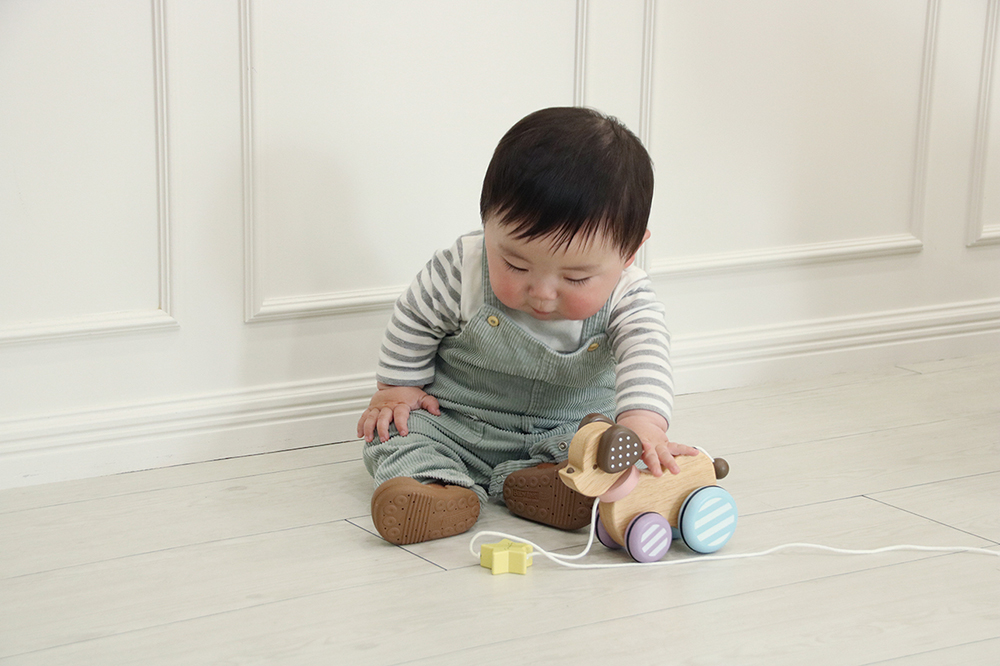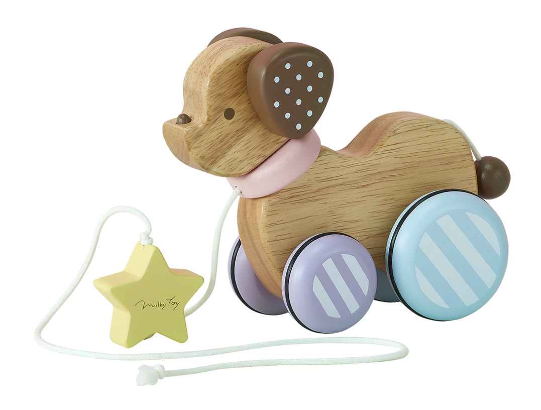 Candy Puppy -キャンディパピー-は、元気でキュートな子犬のデザインのプルトイです。お子様と一緒におさんぽが楽しめます。 ◼︎おしりを振りながら走る姿が魅力 ひもをひっぱると、まあるいおしりを上下に振って走ります。その愛らしい姿に子供たちも大喜びです。 ◼︎子供たちの初めてのお友達 「わんわん」と呼んで親しみやすく、お子さまにとってはじめてのお友達になれるような存在のおもちゃです。