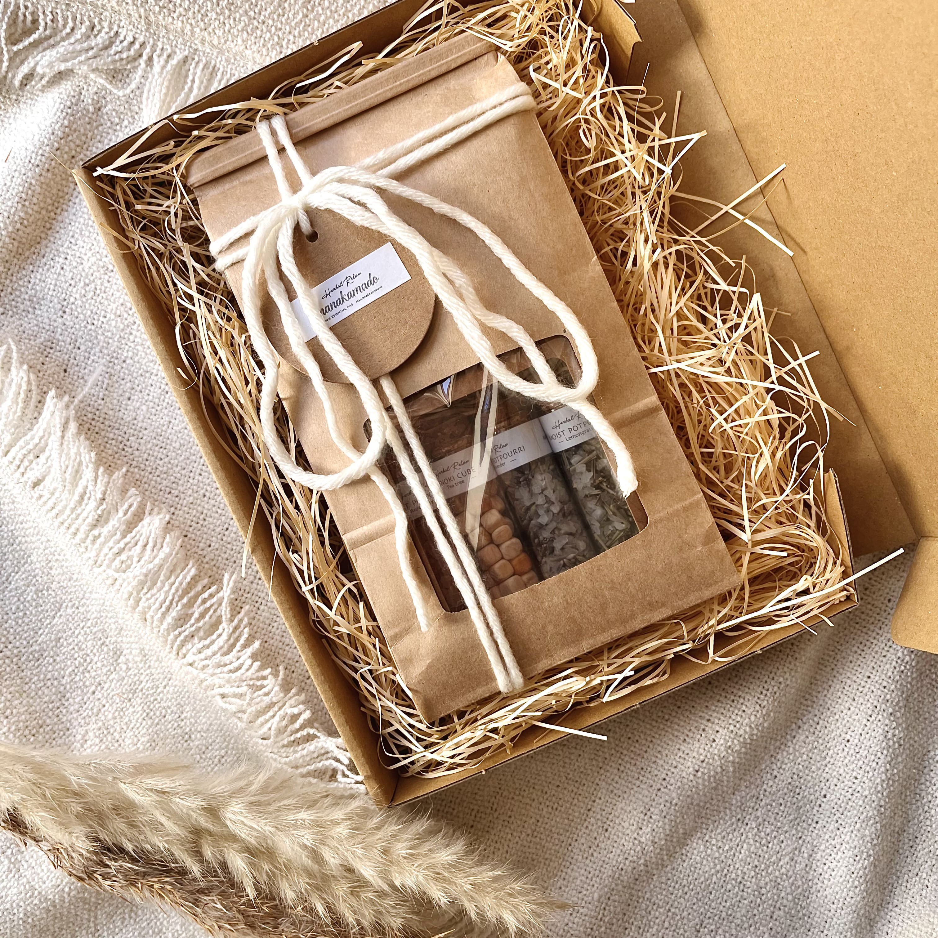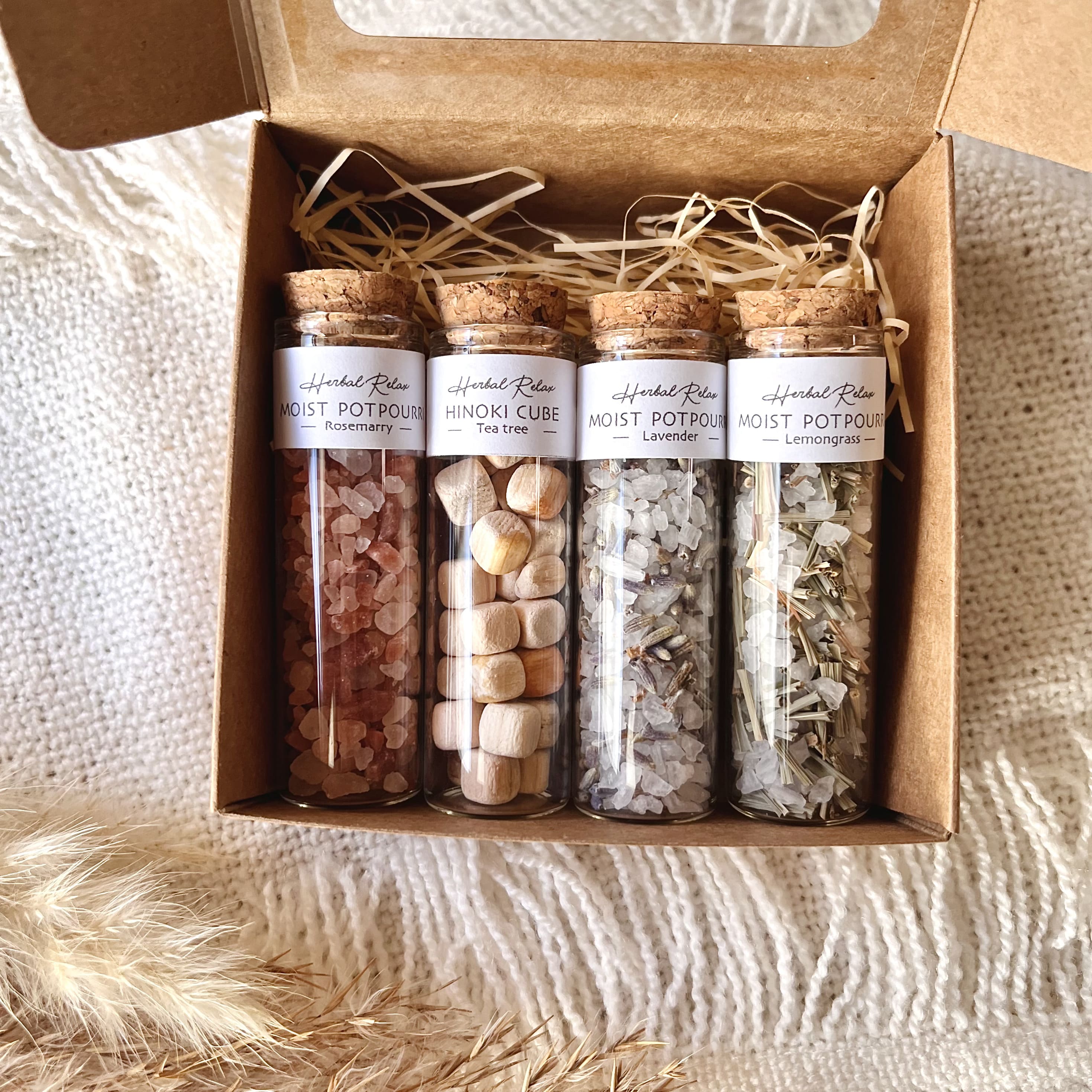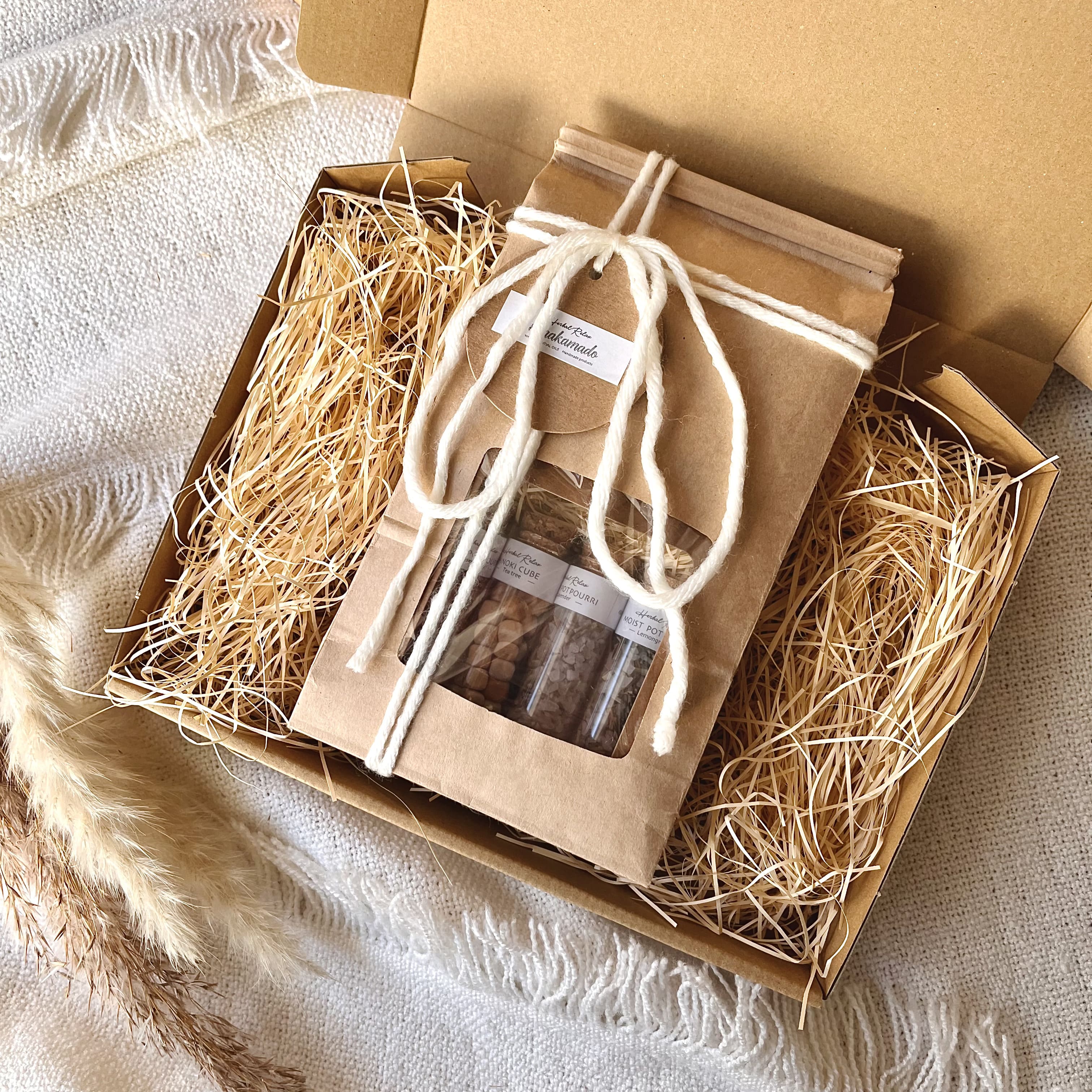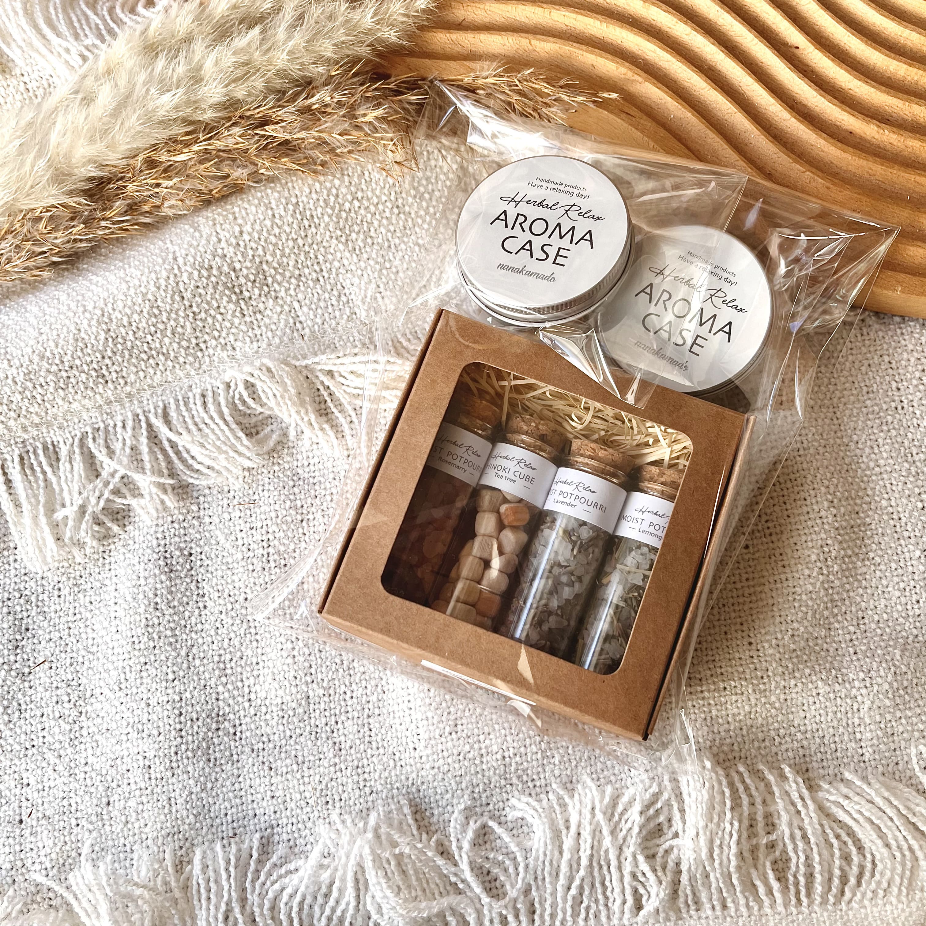 デフォルトはモイストポプリ・ヒノキキューブを窓付き専用BOXに入れてお届けします。