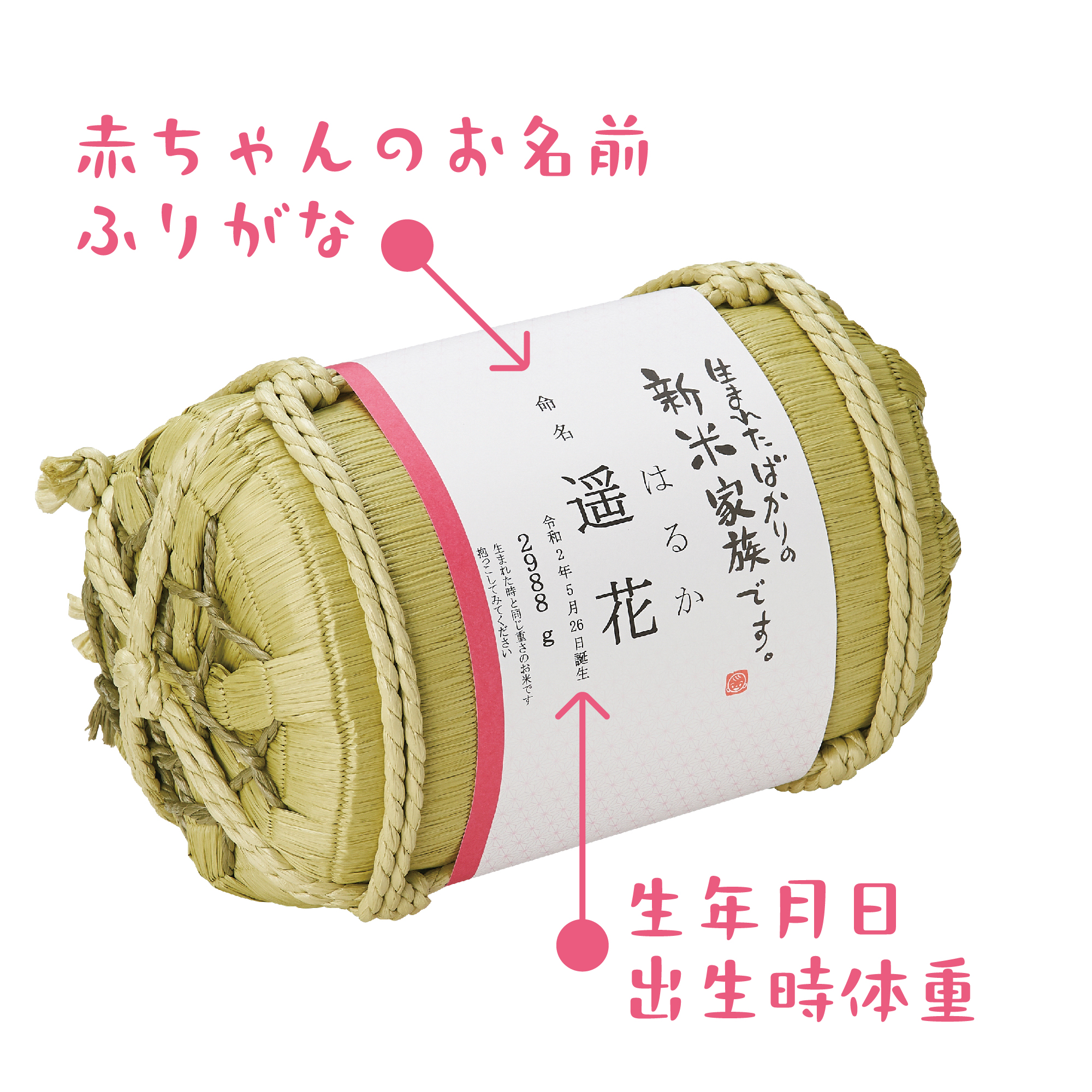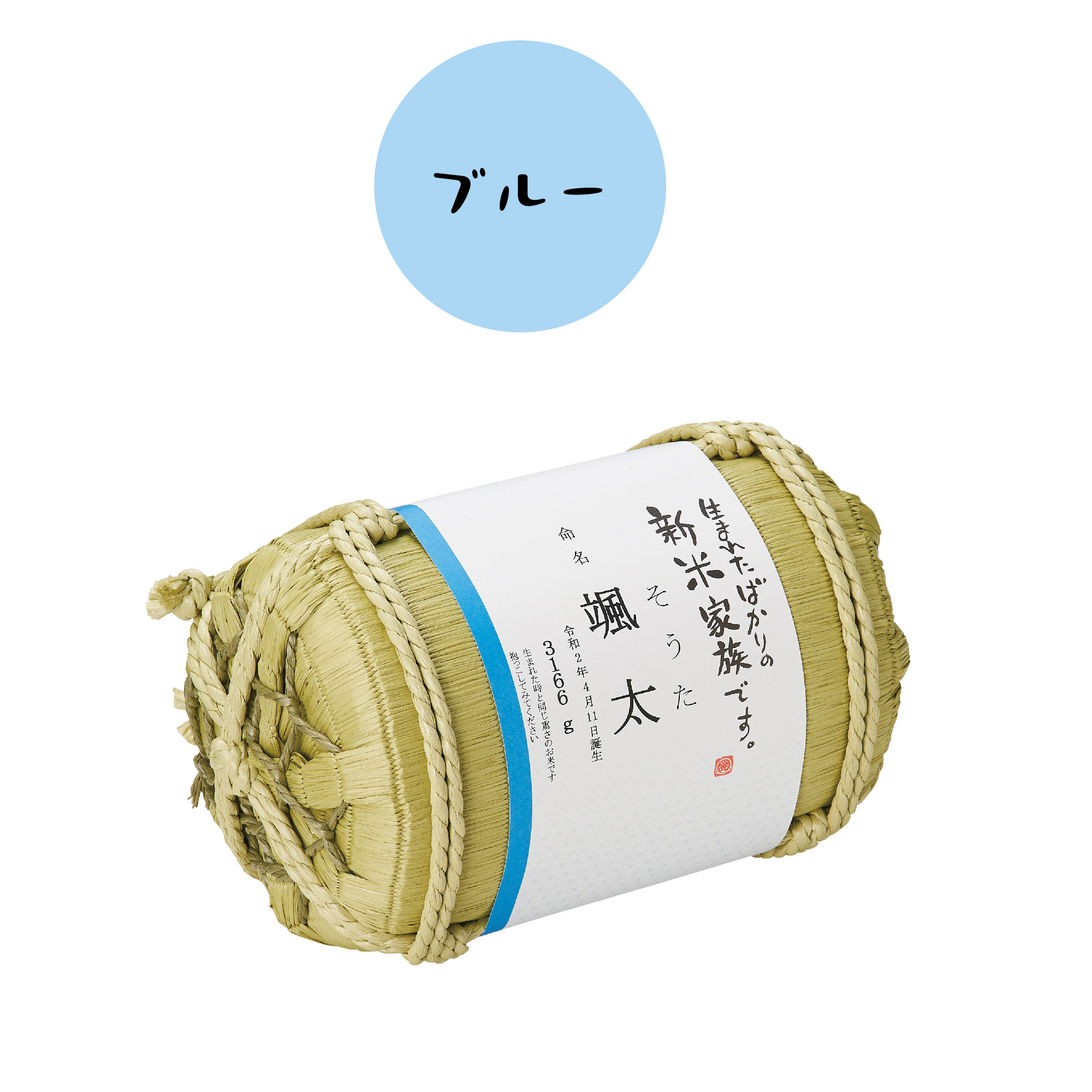 出生時と同じ重さのお米が入った俵入り赤ちゃん体重米です。ピンク・ブルーの2カラーからお選びいただけます。
