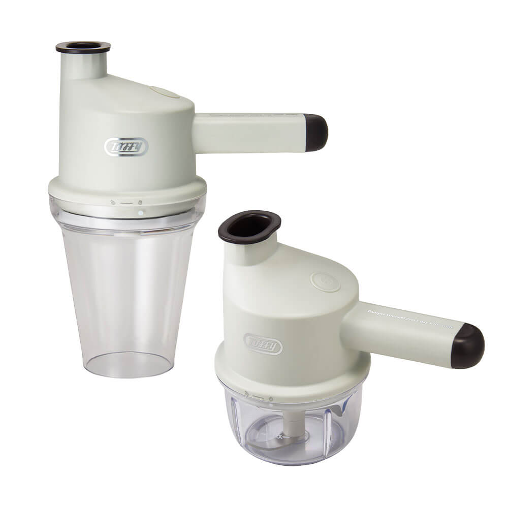 充電式コードレスのスライサー&ミニチョッパーは、スライサーとチョッパーが一緒になった2WAY仕様!包丁やまな板いらずで簡単・時短調理が叶います。ワンプッシュで楽に操作できます。