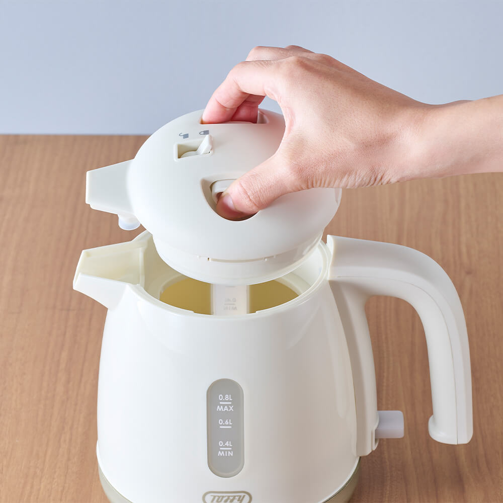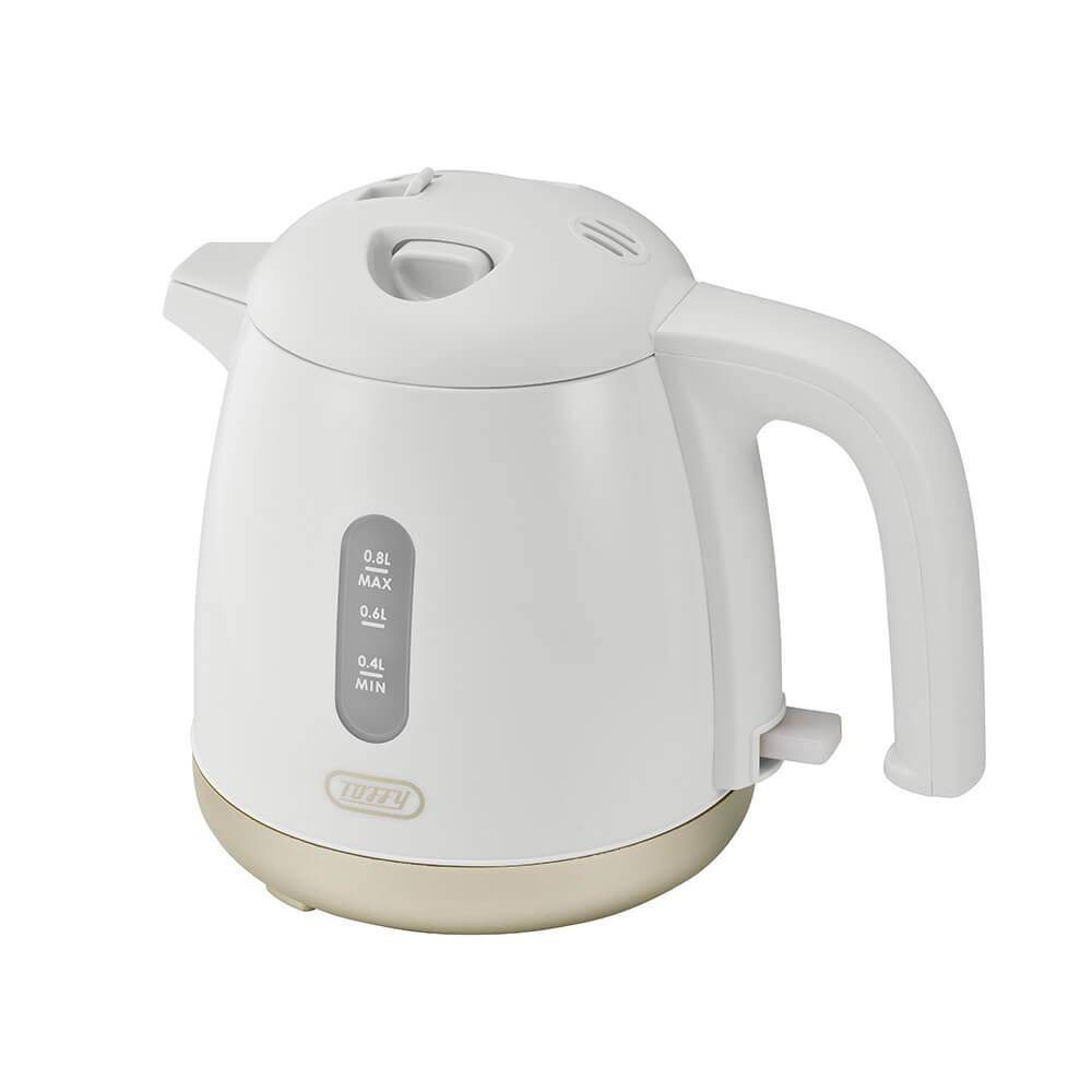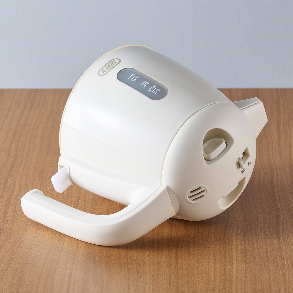 大口注文・法人のお問い合わせはこちらコロンとしたフォルムの電気ケトル。水を入れて電源を入れるだけの簡単操作! 普段使いに最適な、シンプルな使いやすさが特徴です。 倒れてもお湯がこぼれにくい「転倒お湯もれ防止機能」と「空焚き自動OFF機能」が付いた安全設計。 毎朝のコーヒーやリラックスタイム、リモートワーク時など、ティータイムをおしゃれに彩ります。 一人暮らしや新生活に彩りを添えたいときにおすすめなアイテムです。