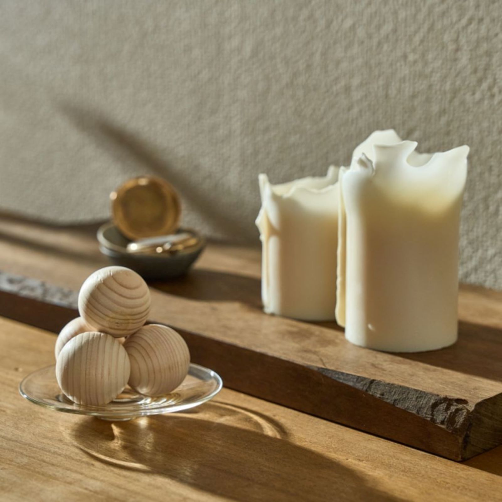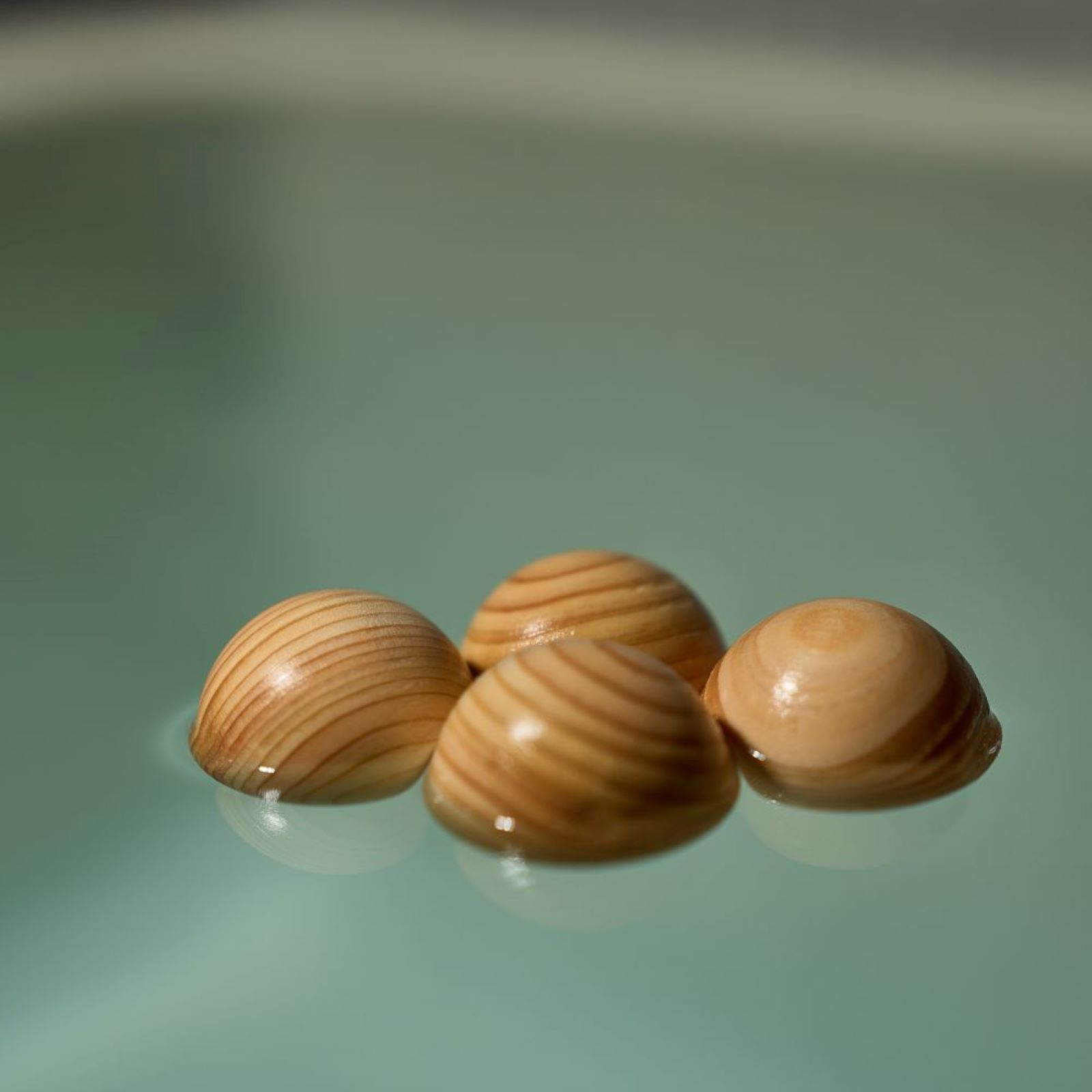 乾かせば繰り返し使えてECOなヒノキリラックスボール。お風呂にぷかぷか浮かべてヒノキ風呂に入っているかのような体験ができます。