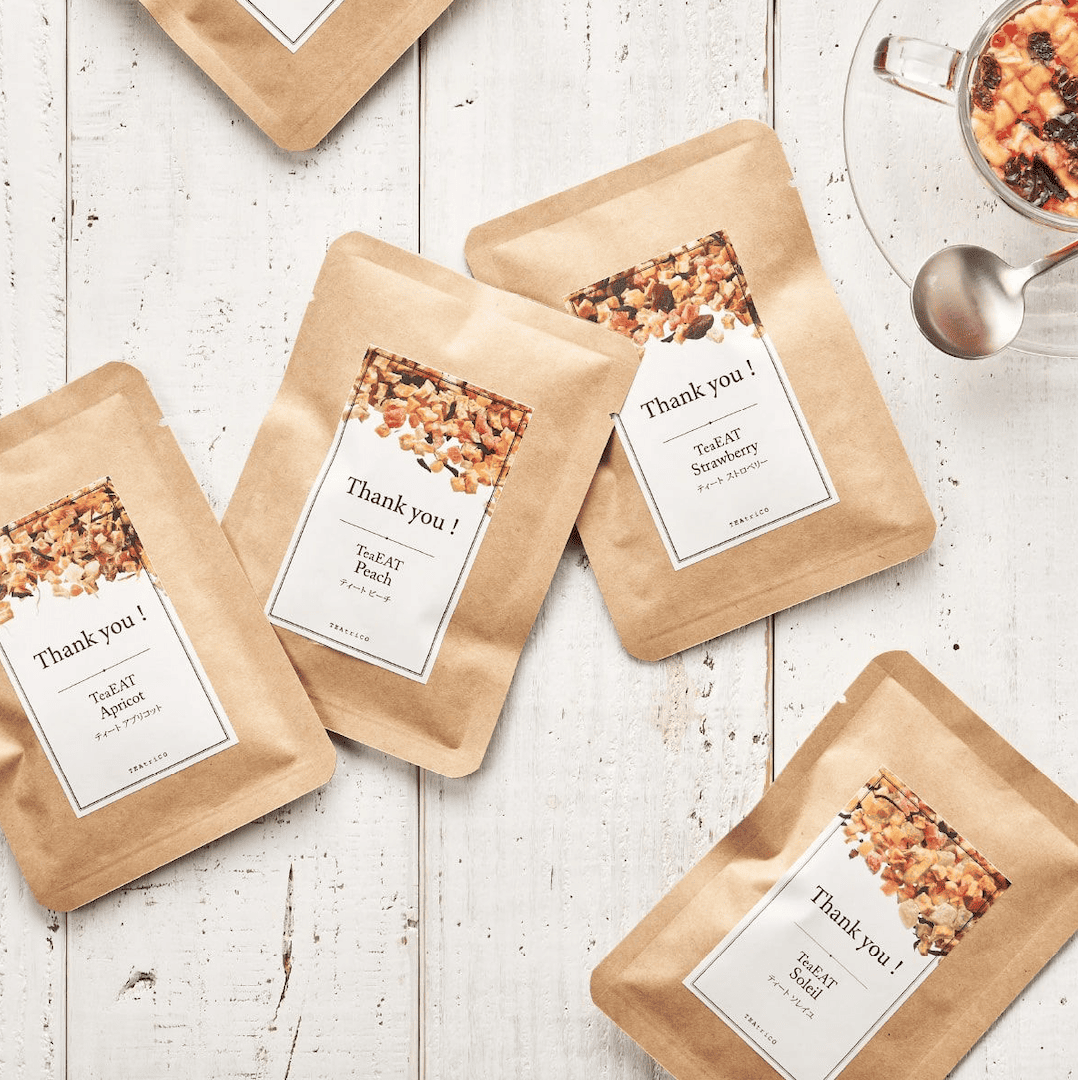 TeaEAT(ティート)とは、【ティートリコ】の代名詞の食べられるフルーツティー。 果実の美味しさがぎゅっと詰まったドライフルーツのお茶です。 完熟フルーツのときめく香り、お口に含んだときの甘みと酸味、そして個性豊かなカラーリング。 あたらしいお茶のカタチをお楽しみ下さい。 カップに入れた茶葉に直接お湯を注ぎ5分程お待ちいただくと、 フルーツも柔らかく戻り、美味しく召し上がっていただけます。 ※ティートはフルーツティーです。紅茶ではありません。 ※ティートは妊娠中の方やお子様のいるご家庭にも贈りやすいノンカフェインです。