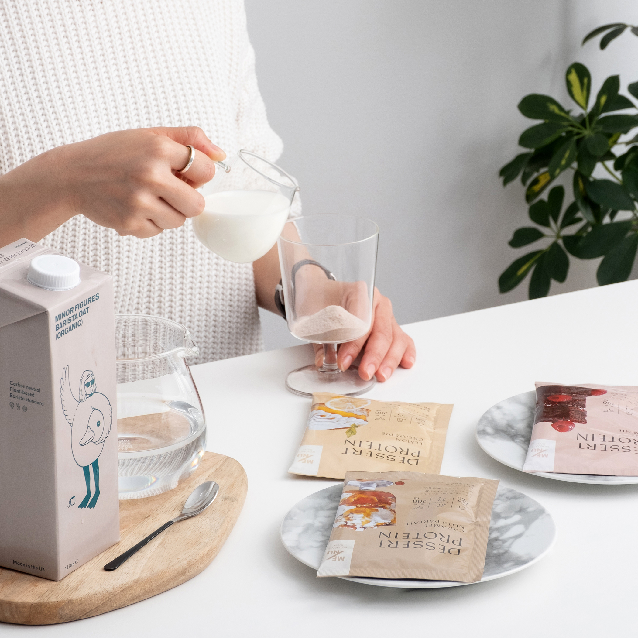 水またはお好みのミルク135mlによく溶かして混ぜるだけ。 ミルクやオーツミルクで溶かせば濃厚感がUPします。 ※タンパク質の性質上、60℃以上の水またはミルクで溶かすと固まってしまう場合がございますのでご注意ください。