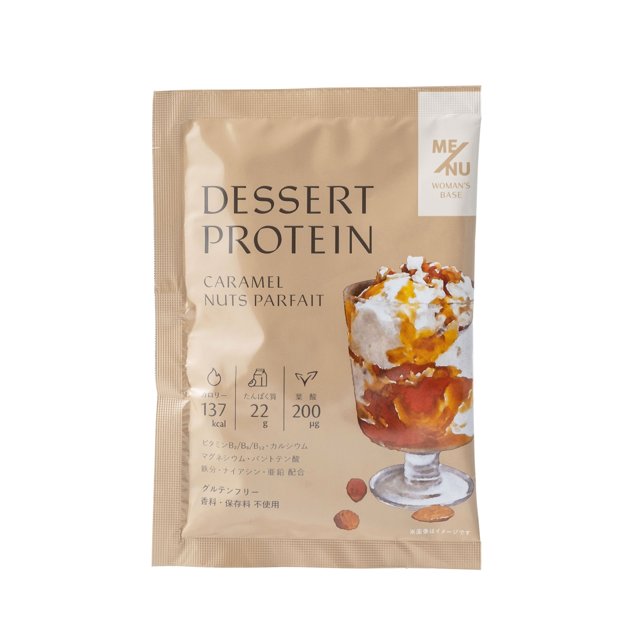 デザートプロテインとは、デザートそのものの濃厚感を楽しみながら 11種類もの栄養成分を補給することができる夢のようなケアプロテインです。 タンパク質はもちろん、葉酸、カルシウム、鉄に加え、亜鉛、マグネシウム、ビタミンB2・B6・B12、ナイアシン、パントテン酸も配合しました。 現代女性に不足しがちな栄養成分がたっぷり入っており、美味しく補給することができます! グルテンフリー、香料・着色料・保存料無添加ですので、 安心して摂り入れることができます!
