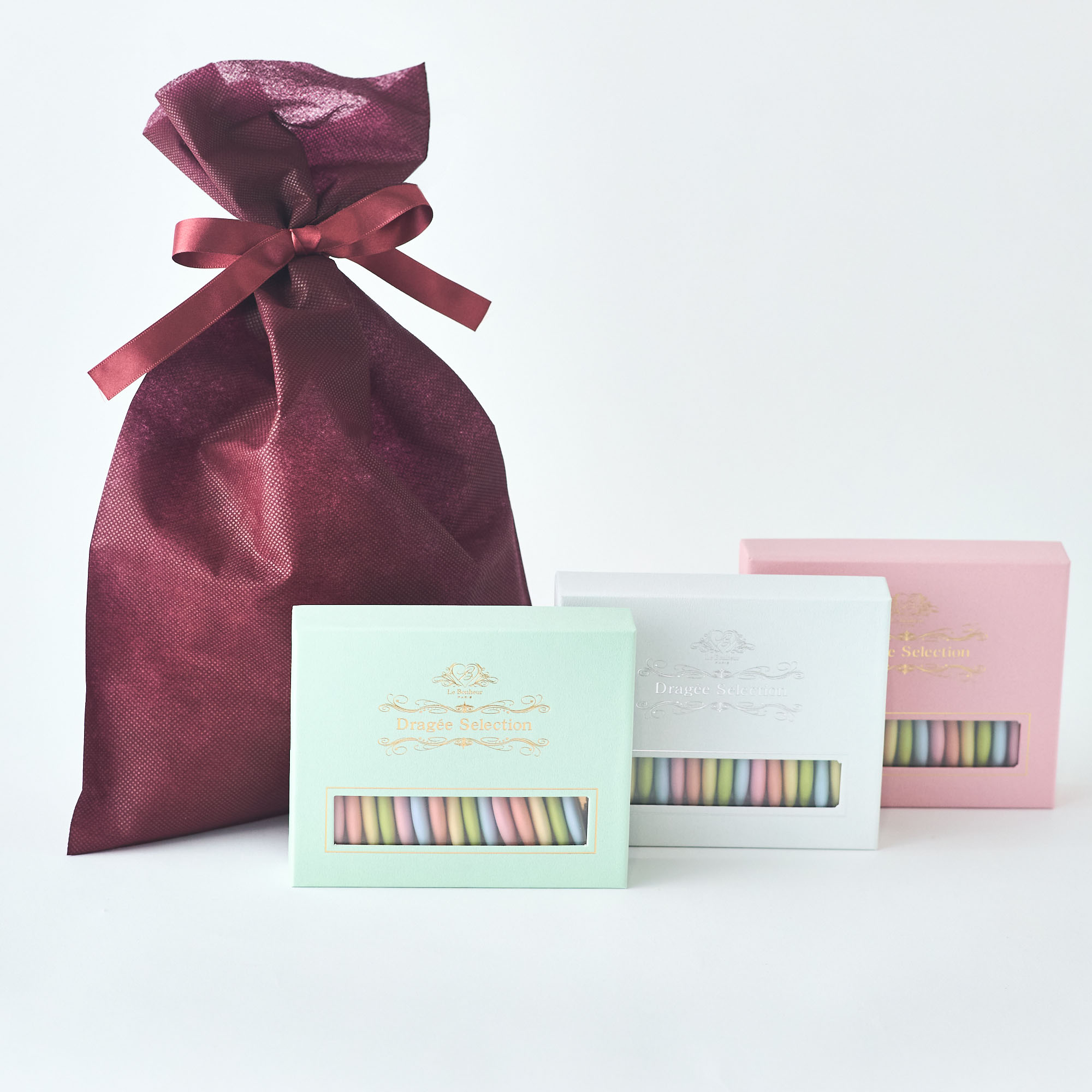 ヨーロッパでは紀元前170年代後半より貴族の間で婚礼や出産などの慶事に祝い菓子として使用されており、フランス語で「幸福の種」という意味もあるドラジェを5点セットでお届け。カラーが選べるラッピング付きです!
