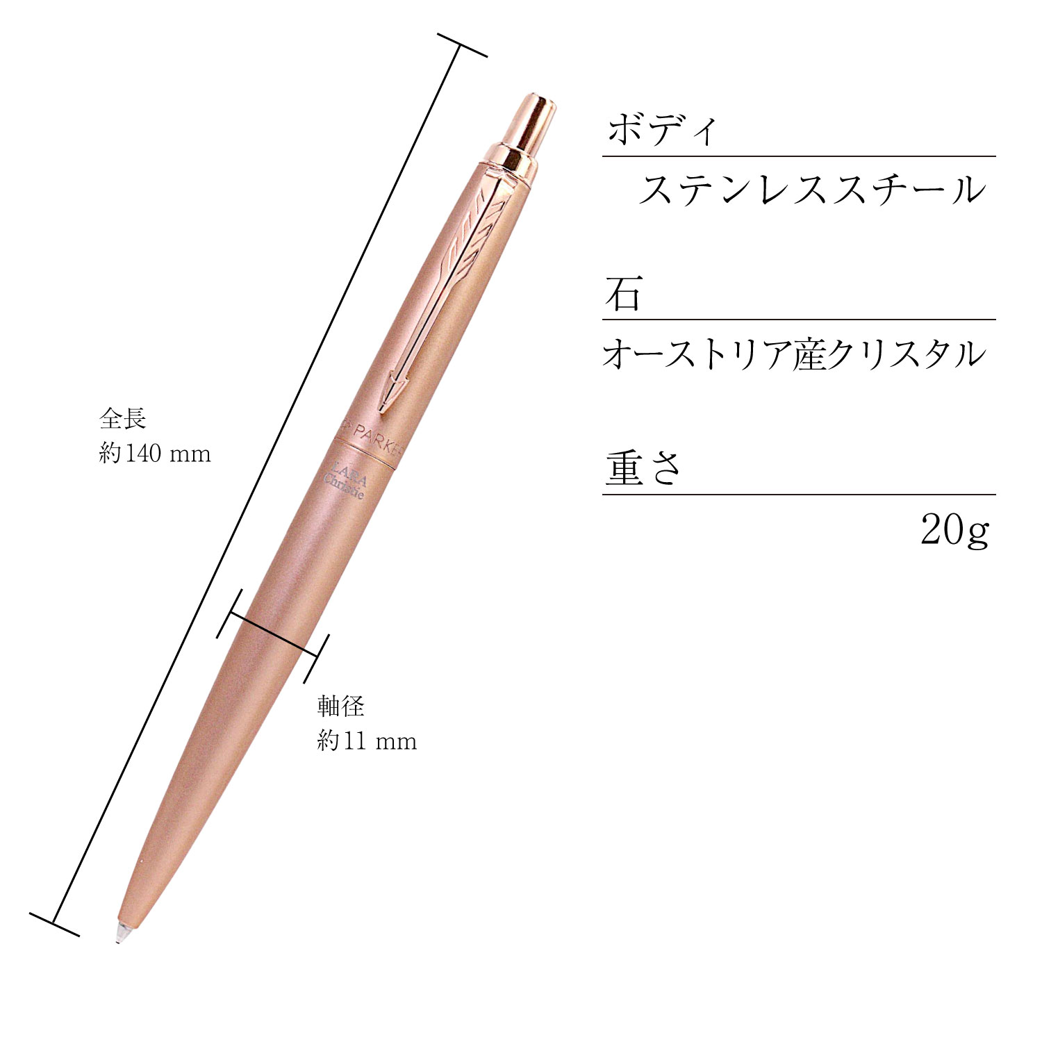 大口注文・法人のお問い合わせはこちら「叡智」や「思慮」及び「助言」を意味する知性の神である知恵の女神メティスをイメージした高級感溢れる、上品なボールペン。 高級筆記具ブランド「PARKER パーカー」の商品で製作。 女神のように煌びやかなオーストリア産クリスタルを上品に1石セットしたスペシャルなアイテムです。