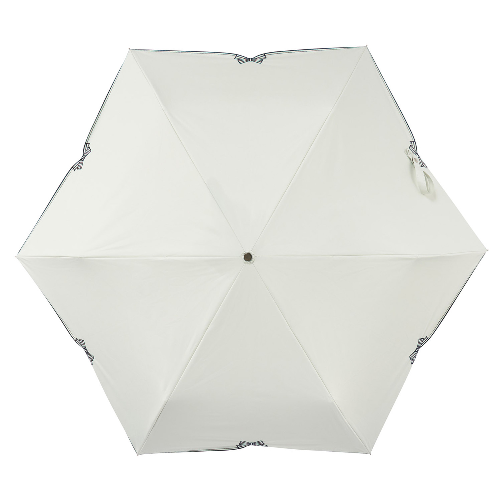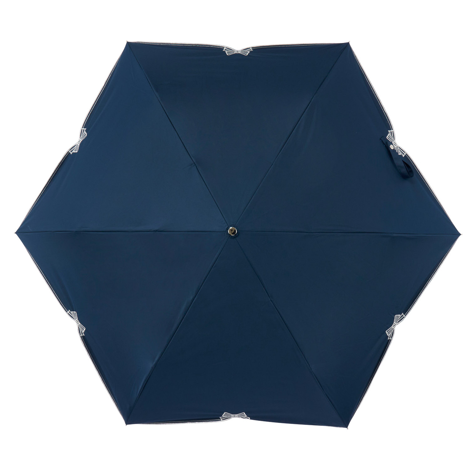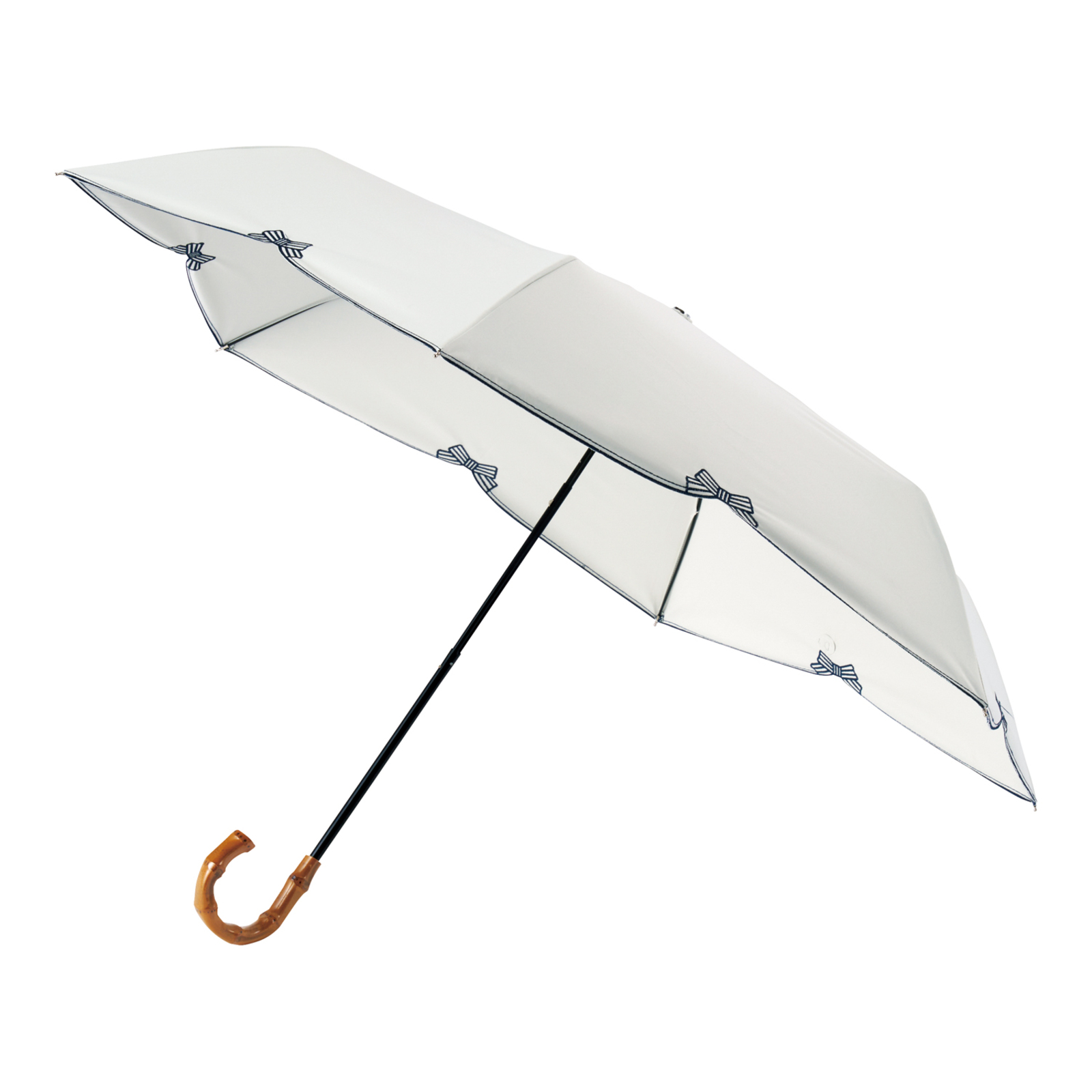 大口注文・法人のお問い合わせはこちらリボンスカラップ刺繍がアクセントになっている晴雨兼用パラソル。生地の内側のカラーラミネーションが顔映りを明るくきれいに見せます。 持ち手は曲がり竹手元なので持ち運びにも便利です。