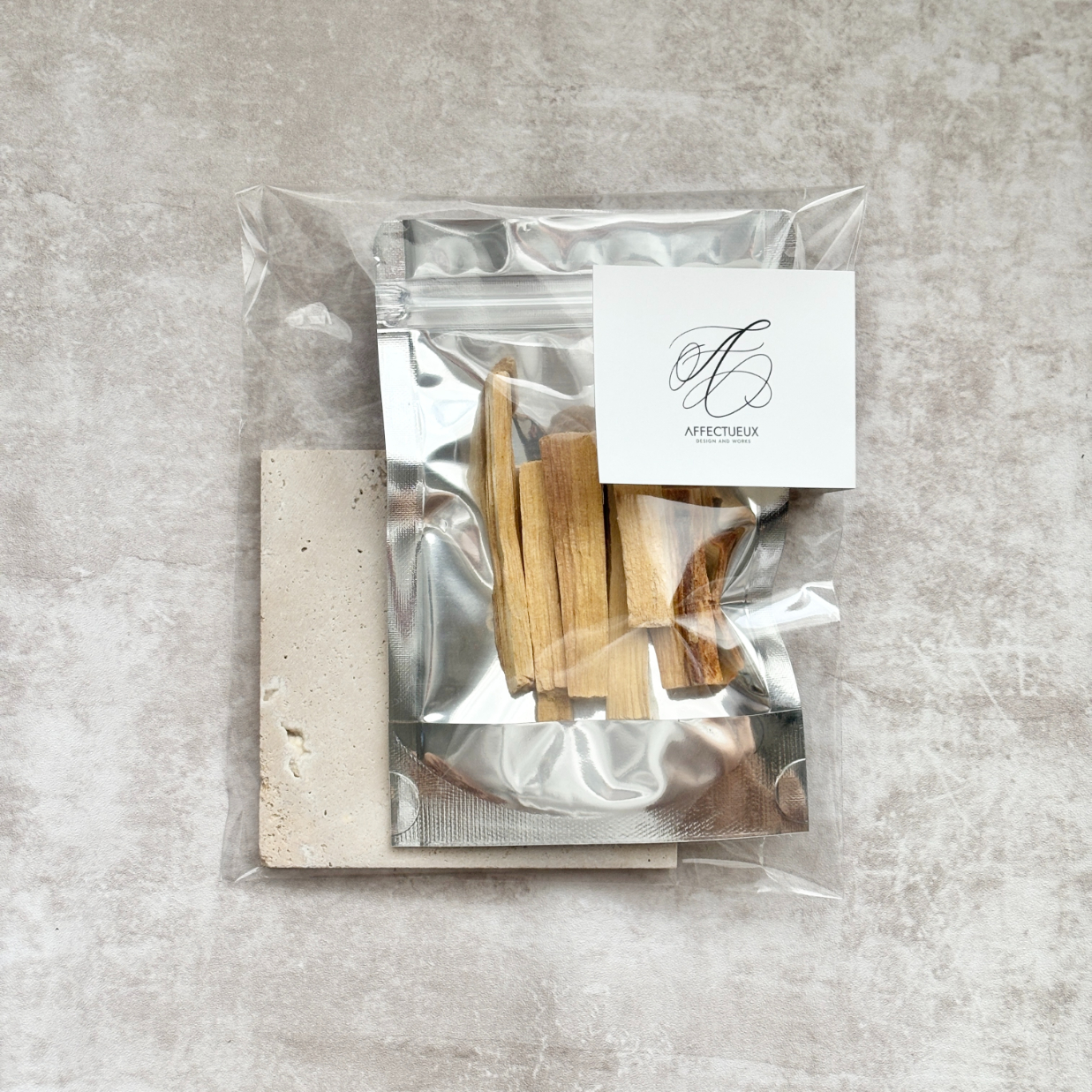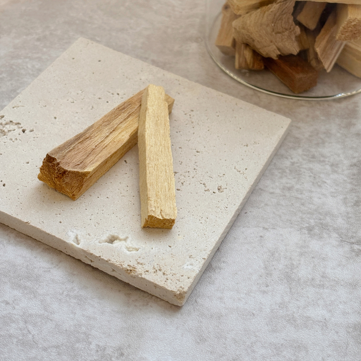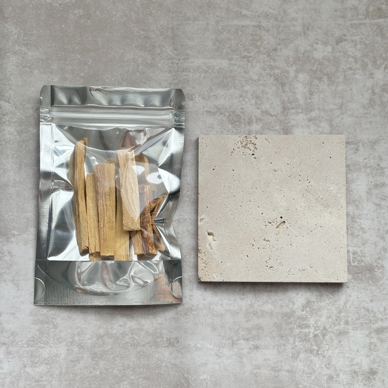 | 注意事項 | ・パロサントには個体差があります。必ずしも掲載写真のようなサイズ感、色、見た目ではないのでご了承ください。 ・トラバーチントレイには個体差があります。天然石なのでご了承ください。 ・トラバーチンは凹凸がある石となるため、凹凸によっては欠けているように見えるものも含まれます。全て検品後の商品なので、不良品ではないためご了承ください。 ・オプションでパロサントを追加いただいた場合、6本追加されます。 ・配送中のトラブルについては責任を負うことができません。発送業者とお客様の間でトラブルを解決いただくようお願いいたします。 |