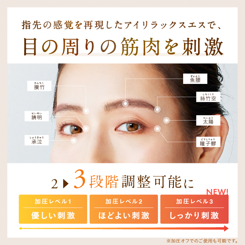 大口注文・法人のお問い合わせはこちら3段階の温熱、3段階の加圧機能により、従来品よりさらに自分好みのリラックスケアを実現可能にしました。