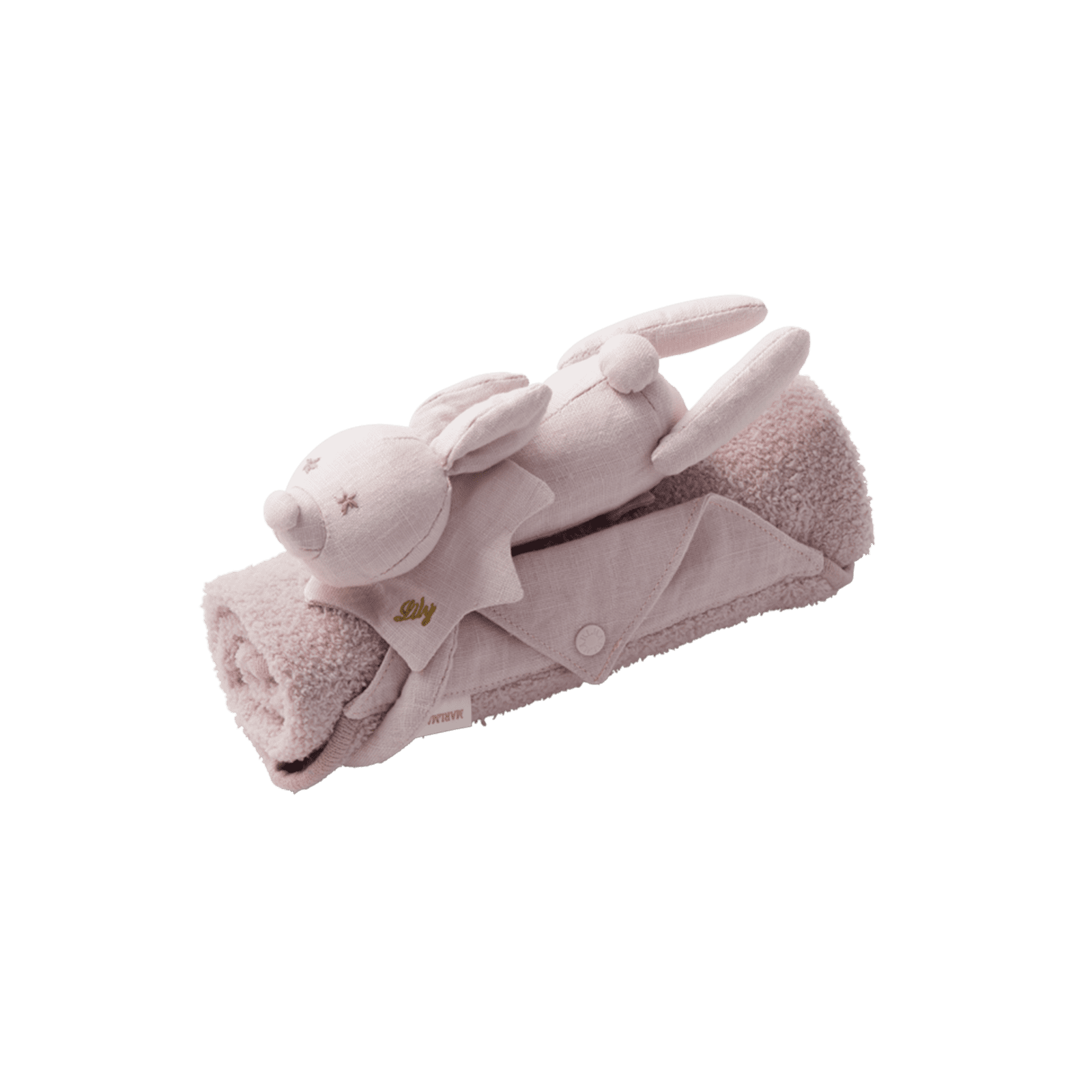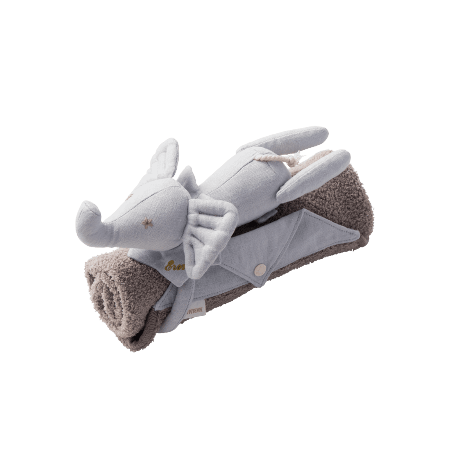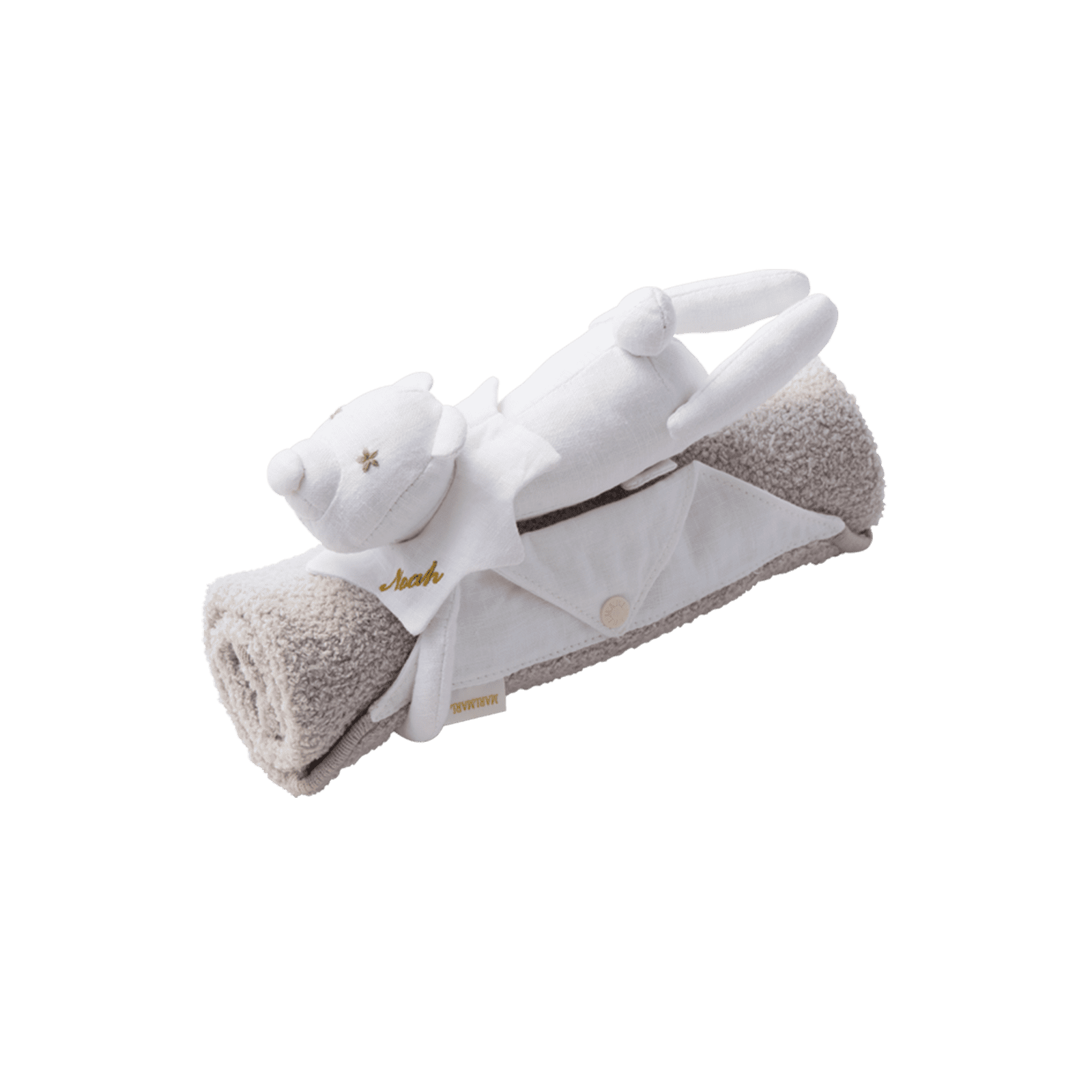 贈り物に込められたたいせつな人への思いと、ギフトを選ぶワクワクの気持ちに寄り添う「MARLMARL(マールマール)」の愛らしいぬいぐるみ付きの小さめブランケット。ぬいぐるみは、ドットボタンで取り外しが可能です。