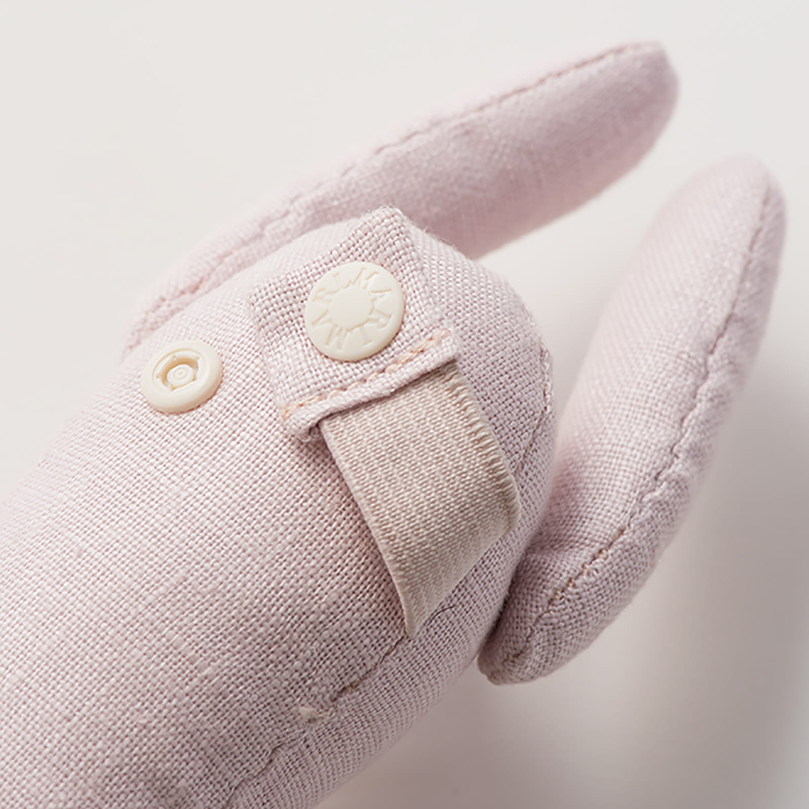 ぬいぐるみは、ドットボタンで取り外しが可能です。中に鈴が入っているのでガラガラとしても使えて、お腹にあるパーツを使ってベビーカーへ取り付ければ、安心してお出かけのお供にできます。大きくなったら、バッグに付けても。