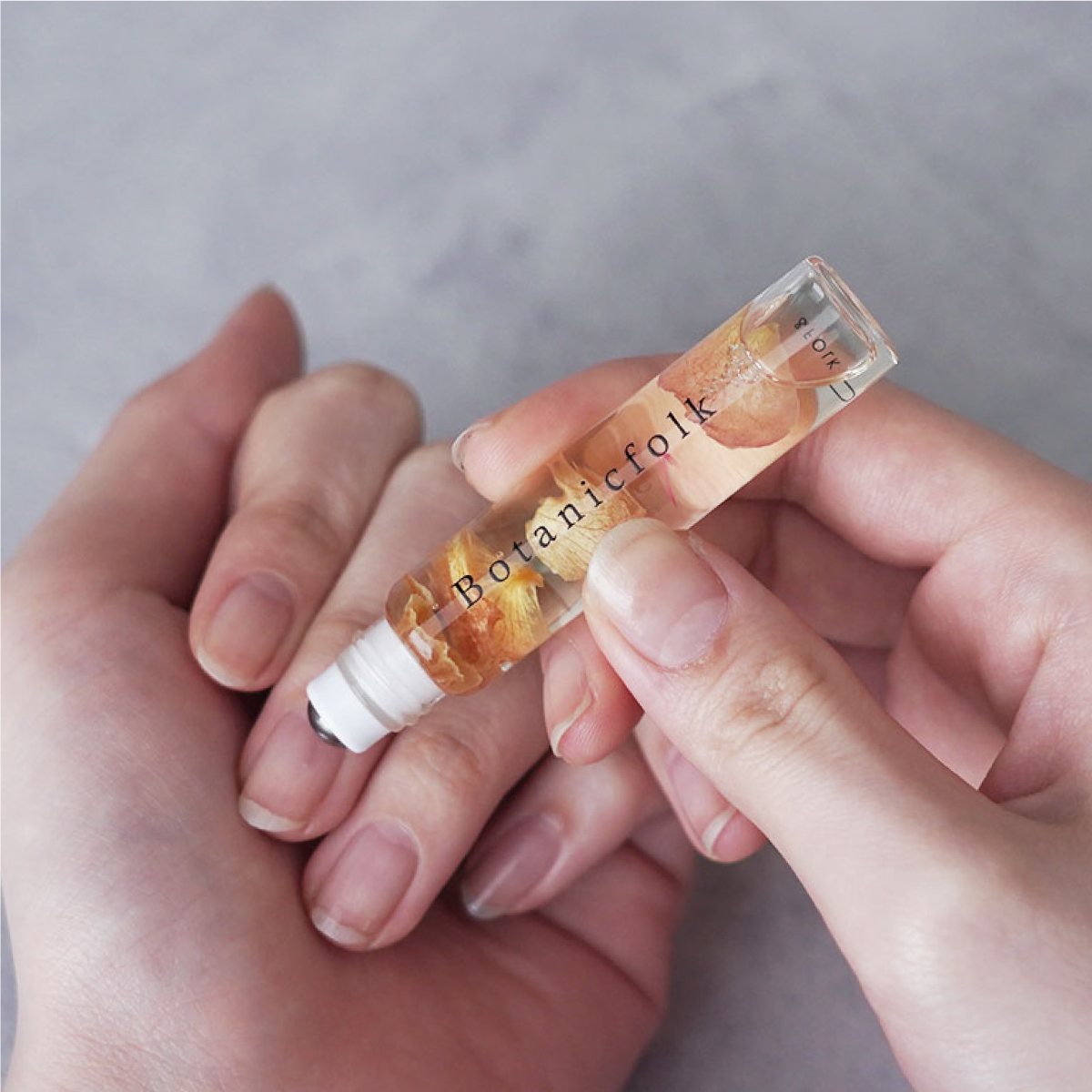 ふとした瞬間、1日の中で自分と向き合う時間。忙しい現代だからこそ、ちょっとした自分時間は大切にしたいもの。 オイルの中でゆっくりと浮遊する花びらを眺めながら、ほっと一息ついてみるのも。麗らかな香りが、指先の力をフワっと抜いてくれます。