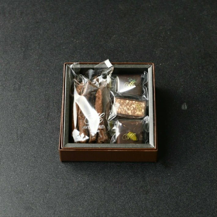 | 原材料 | 【オランジェット】オレンジ砂糖漬け(国内製造)、チョコレート、ココアパウダー/香料、(一部に乳成分・オレンジ・大豆を含む) 【ボンボンショコラ】チョコレート(国内製造、ベルギー製造)、生クリーム、砂糖、ヘーゼルナッツ、バター、水飴、カカオバター、ピスタチオ、アーモンド、パッションフルーツピューレ、フランボワーズピューレ、洋酒、クルミ、ミント、カカオマス、コーヒー、紅茶、転化糖、蜂蜜、トンカ豆、フランボワーズパウダー、バニラビーンズ、シナモンパウダー、卵白、食塩/乳化剤、香料、トレハロース、ゲル化剤(ペクチン:りんご由来) |