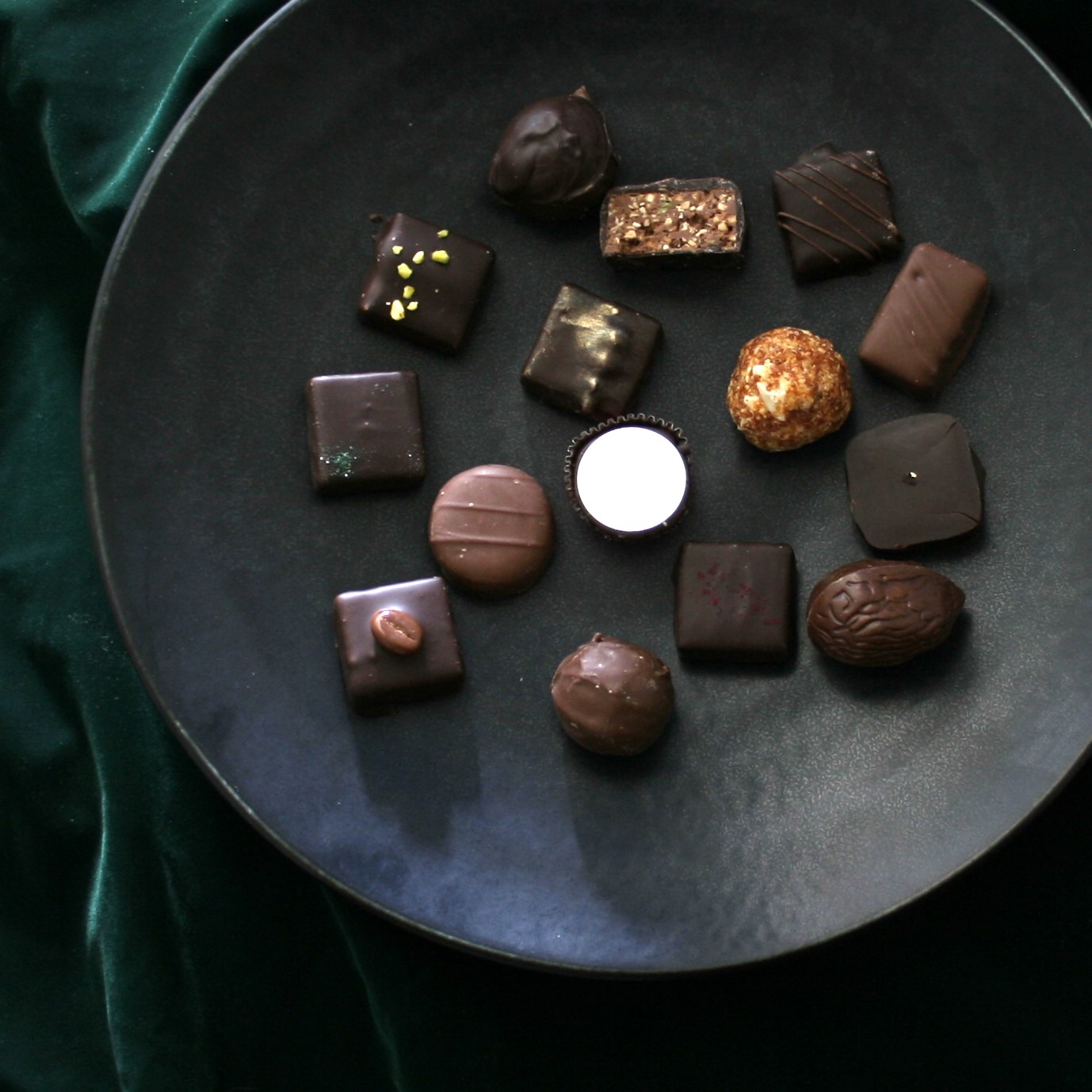 ピスタチオやフランボワーズ、ミント、アールグレイ、など 15種類以上のボンボンショコラ中から厳選の3個を詰め合わせてお届けいたします。
