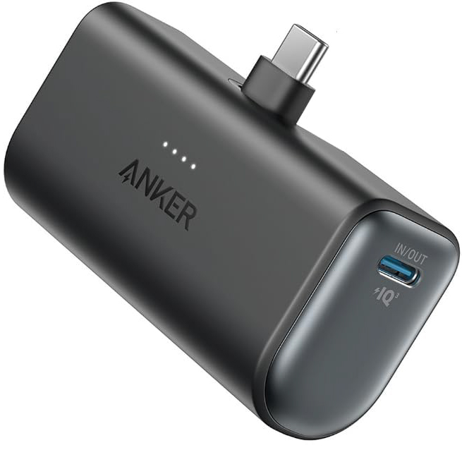 ※お届けする商品のカラーはブラックとなります。 小さいバッグにもすっぽり収まる超コンパクト設計で、端子部分は折りたたみ可能です。 5000mAhの容量でiPhone 14※を約1回充電いただけます。 iPhone 14 Plus / 14 Pro Max への満充電回数は1回未満になります。 (Anker調べ)