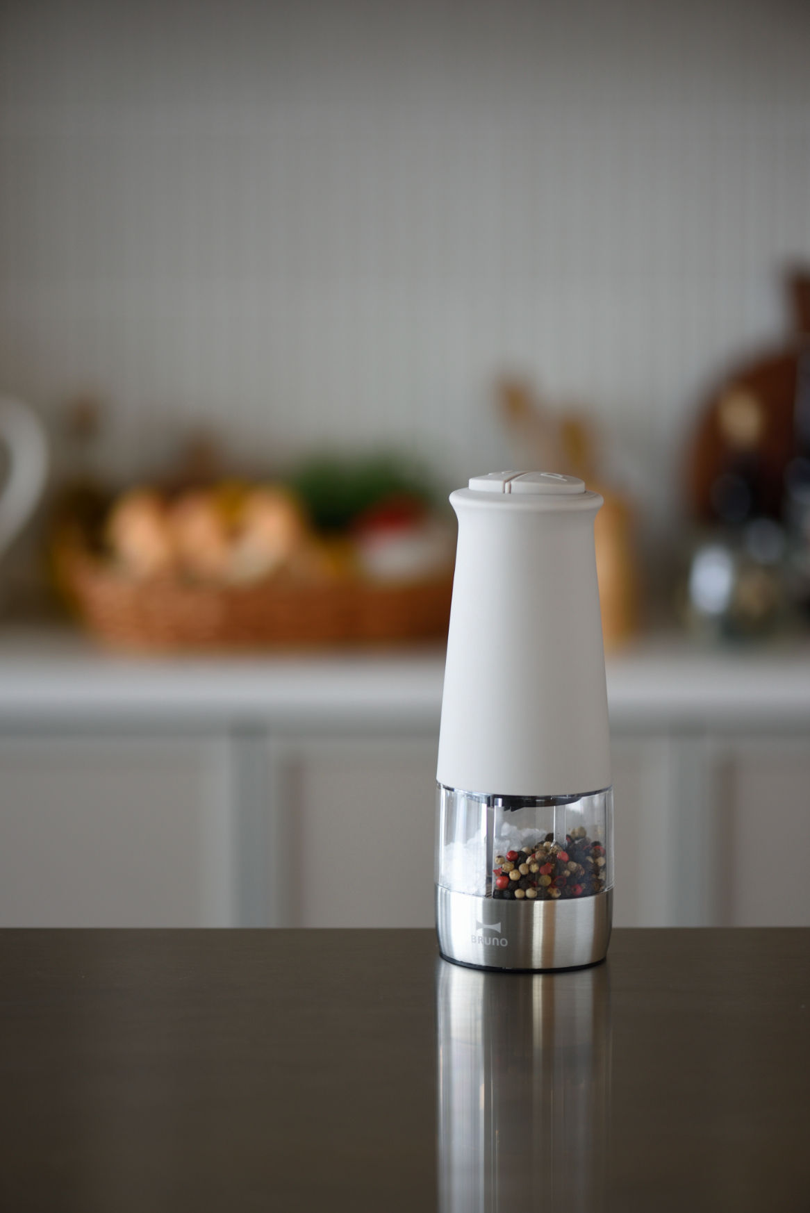 片手で挽けて、粗さも調整できるコロンとかわいい1台2役の電動ミルです。底面のダイヤルで、料理にあわせてお好みの粗さに調整可能。1本に2種のスパイスが入ります。