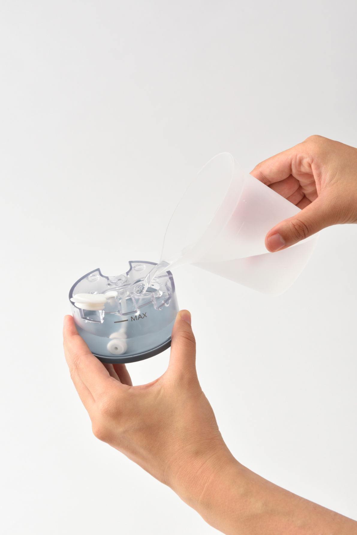 容量タンクは1度の給水で約130ml入ります。給水1回で服3枚分です。 立ち上がりは約25秒なので、忙しい朝の身支度が時短に。