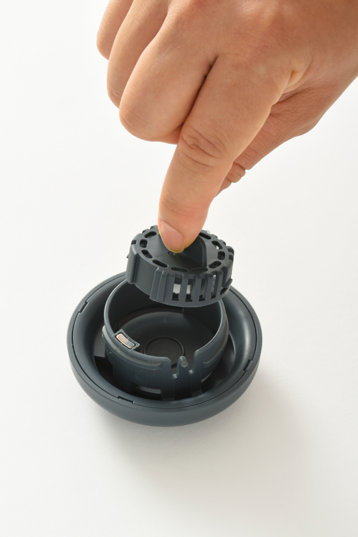 ③アロマケースの凹とトップカバーの凸を合わせてアロマケースを元に戻します。