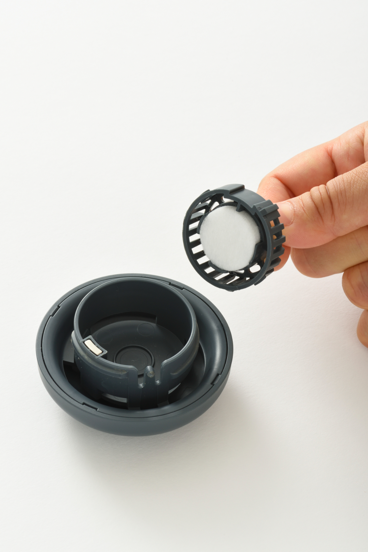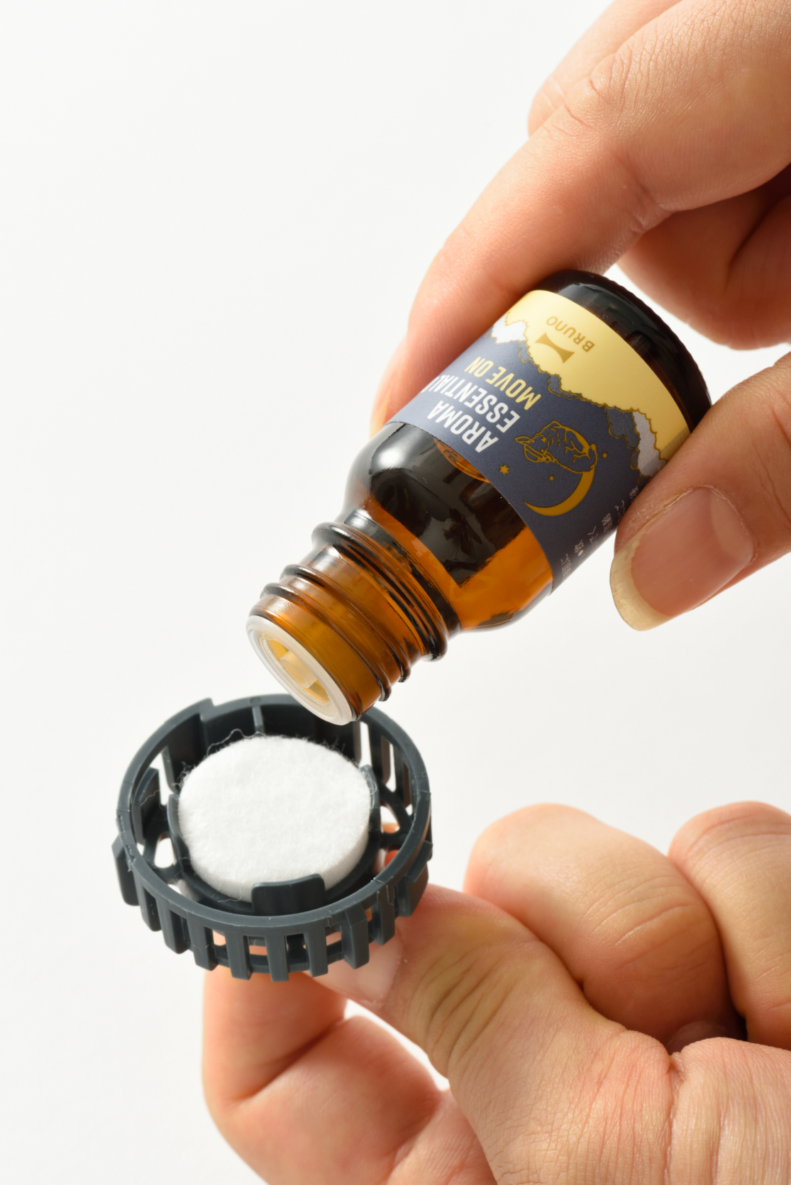 ②アロマケースに設置されているアロマパッドに市販のアロマオイルを染み込ませます。