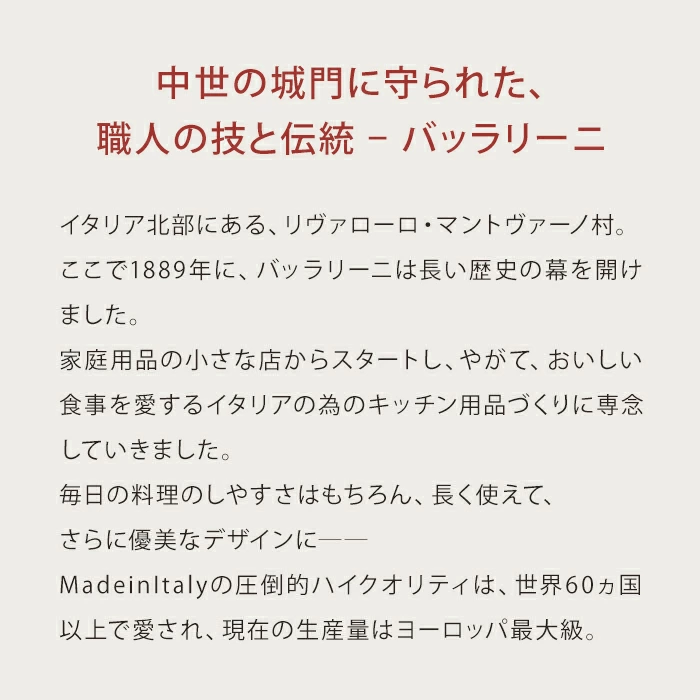 | 商品サイズ | 【24cmサイズ】 材質:アルミニウム、フェノール樹脂 直径24cm/IH対応 原産国:イタリア 重さ:820g 長さ:42.5cm 幅:24.6cm 高さ:6.5cm 直径:24.0cm 【28cmサイズ】 材質:アルミニウム、フェノール樹脂 直径28cm/IH対応 原産国:イタリア 重さ:1.15kg 長さ:46.5cm 幅:28.7cm 高さ:7.0cm 直径:28.0cm ハンドル長さ:16.7cm |