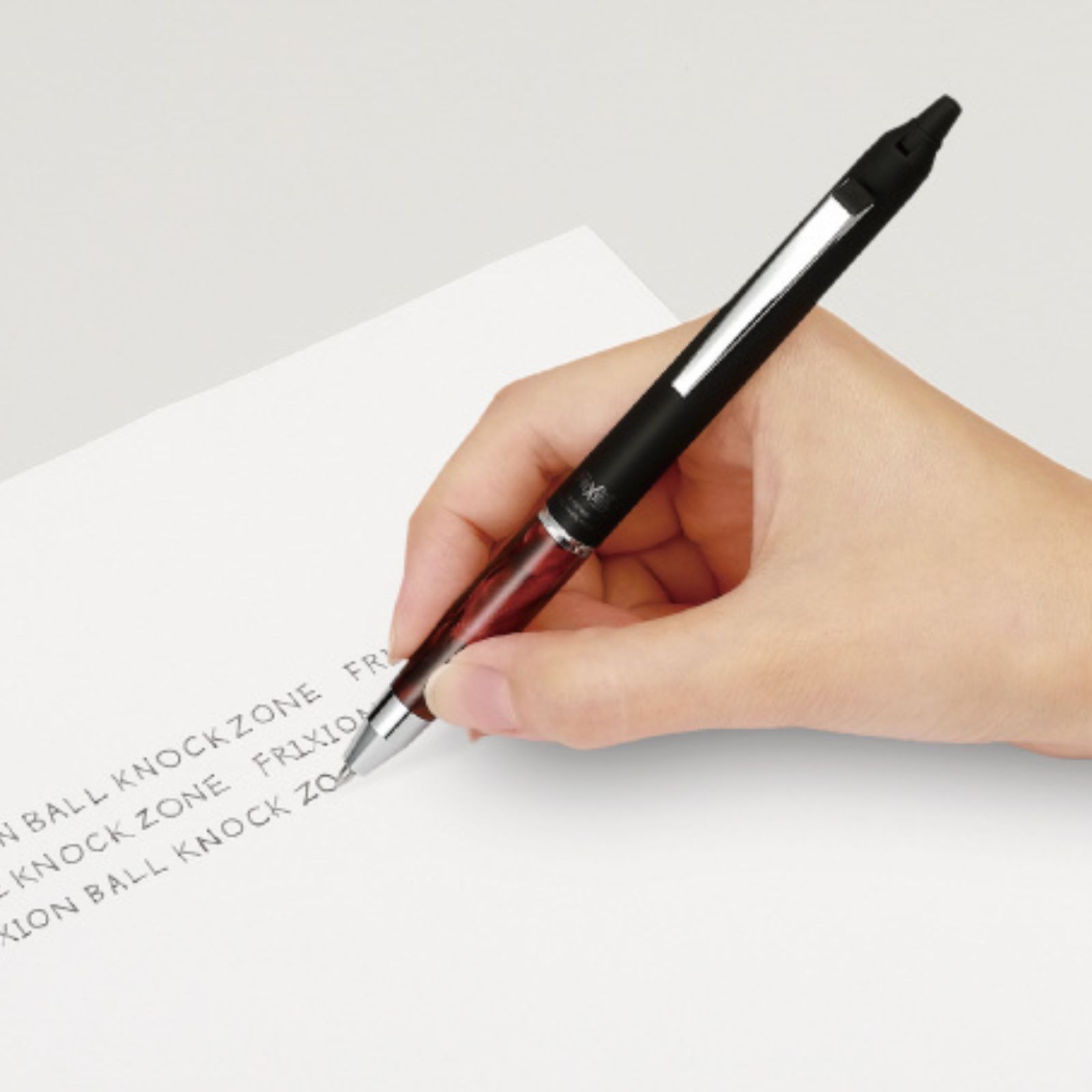 大口注文・法人のお問い合わせはこちらペン先のがたつきを抑制し安定した筆記、ノック音を大幅にカットしたノック機構、従来品よりも濃く長く書ける新開発インキにより、より集中へ誘うフリクションボールノックZONEです。 グリップにはマーブル調を施し、ワンランク上のビジネスシーンを演出するデザインとなっています。