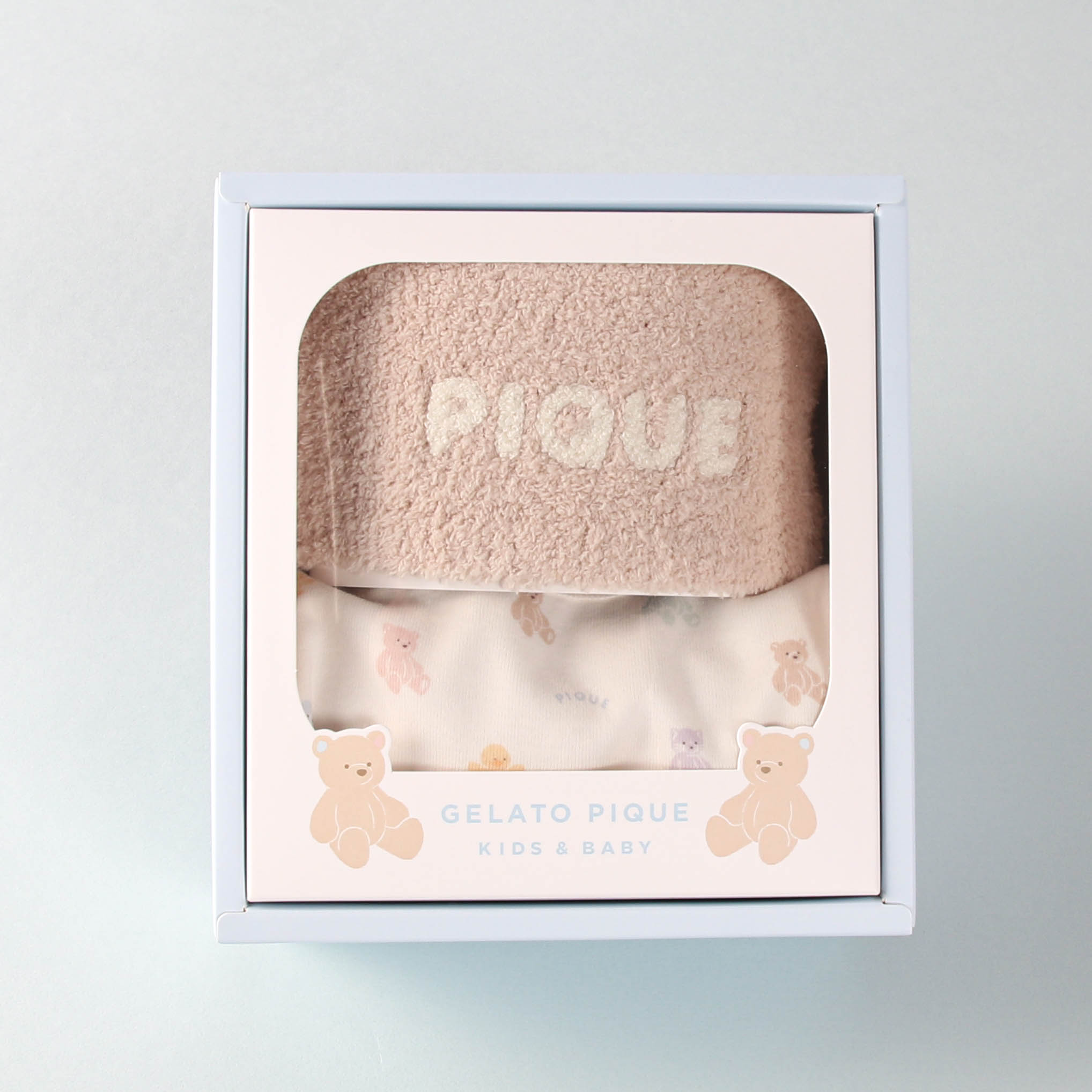 大口注文・法人のお問い合わせはこちらgelato piqueで人気のBABYアイテムを組み合わせた、可愛い6種類のギフトBOXシリーズが新登場しました。 さらりとした肌触りの'パウダー'素材のベア耳付きニットキャップと、カラフルなぬいぐるみ柄スタイの2点を、専用のBOXに入れてお届けします。 色は優しいベージュをご用意。 ほかにも様々なアイテムを組み合わせたギフトBOXをご用意しているので、お好みのセットをお選びいただけます。 誕生日や出産のお祝い、季節のギフトなどにおすすめです。
