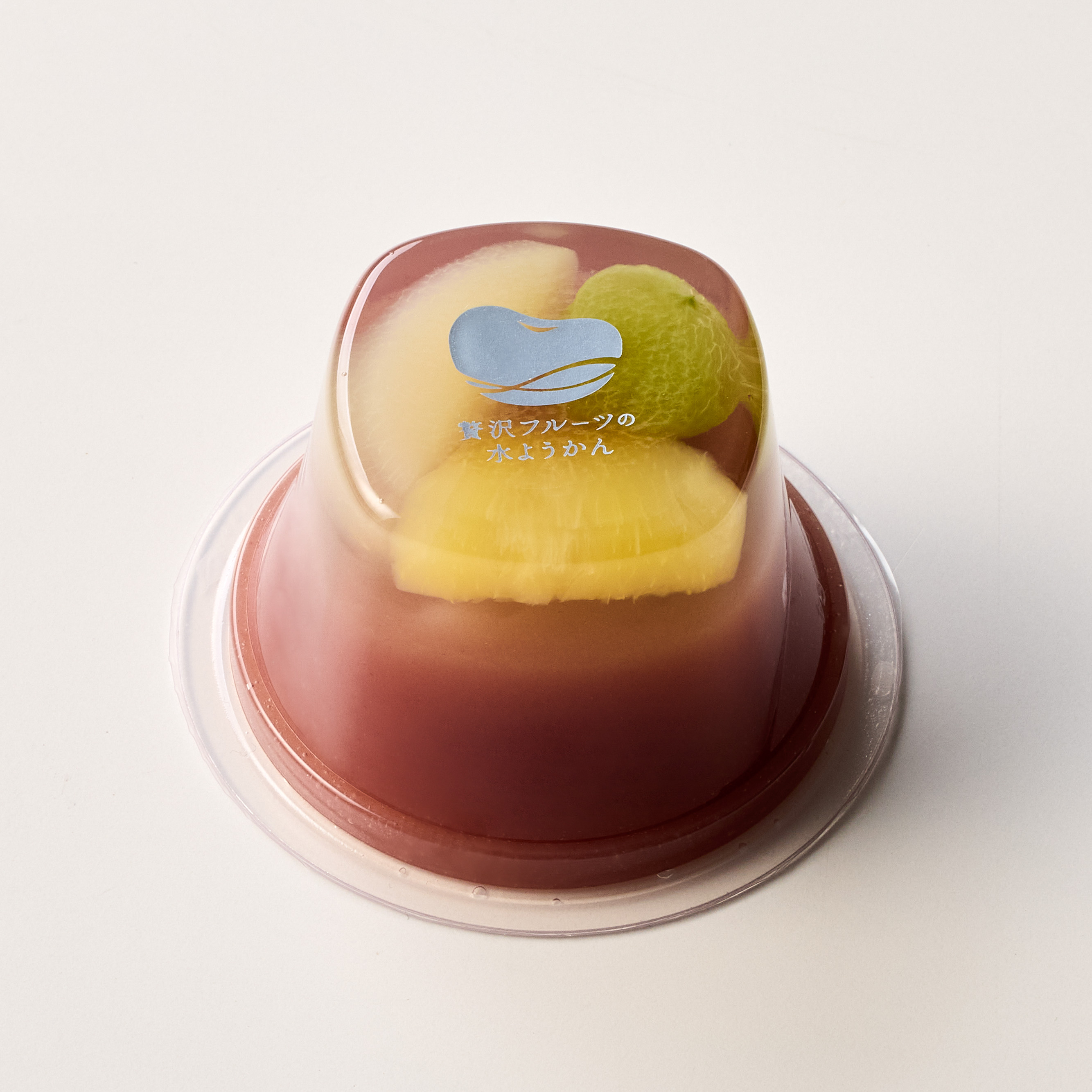 なめらかで口溶けの良い、やさしい風味の水ようかんに、ぶどうと白桃の芳醇な甘み、パイナップルのフルーティーな酸味が重なる贅沢な味わいとなっています。