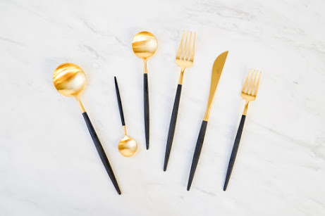 ポルトガルのカトラリーメーカー【クチポール】のゴアブラックxゴールド 6本セットです。