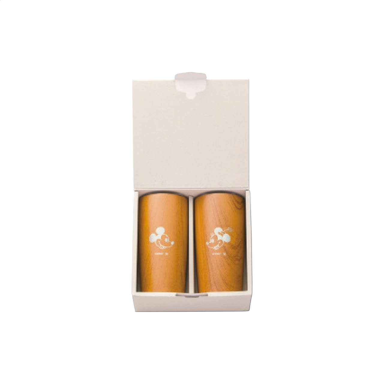 大口注文・法人のお問い合わせはこちら木目調の落ち着いたお洒落な雰囲気のタンブラー。可愛いミッキーとミニーが向かい合うステンレス真空タンブラーセットです。