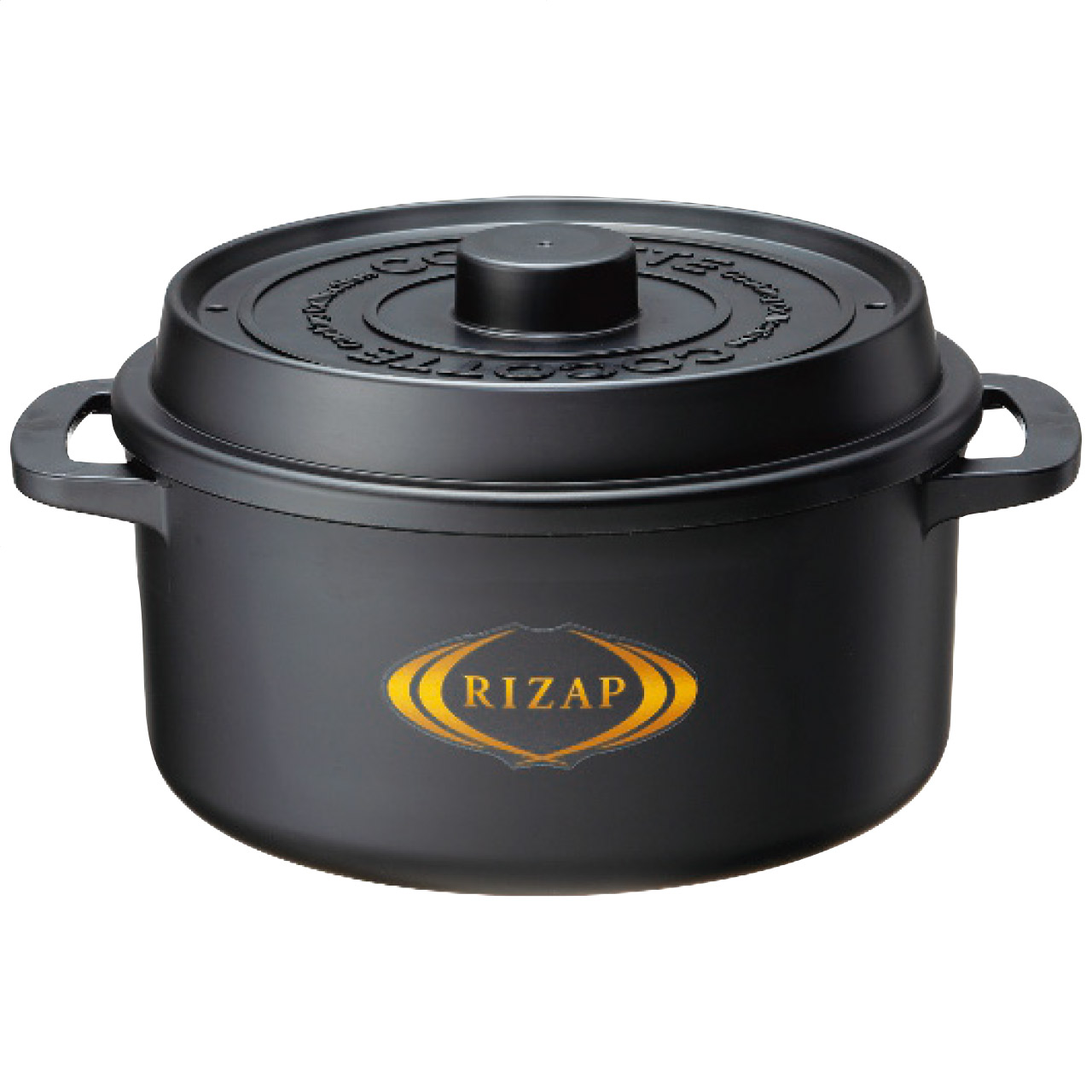 ココット風のプラスチック製の電子レンジ用鍋。パーソナルトレーニングジム「RIZAP(ライザップ)」監修するレシピ付きです。