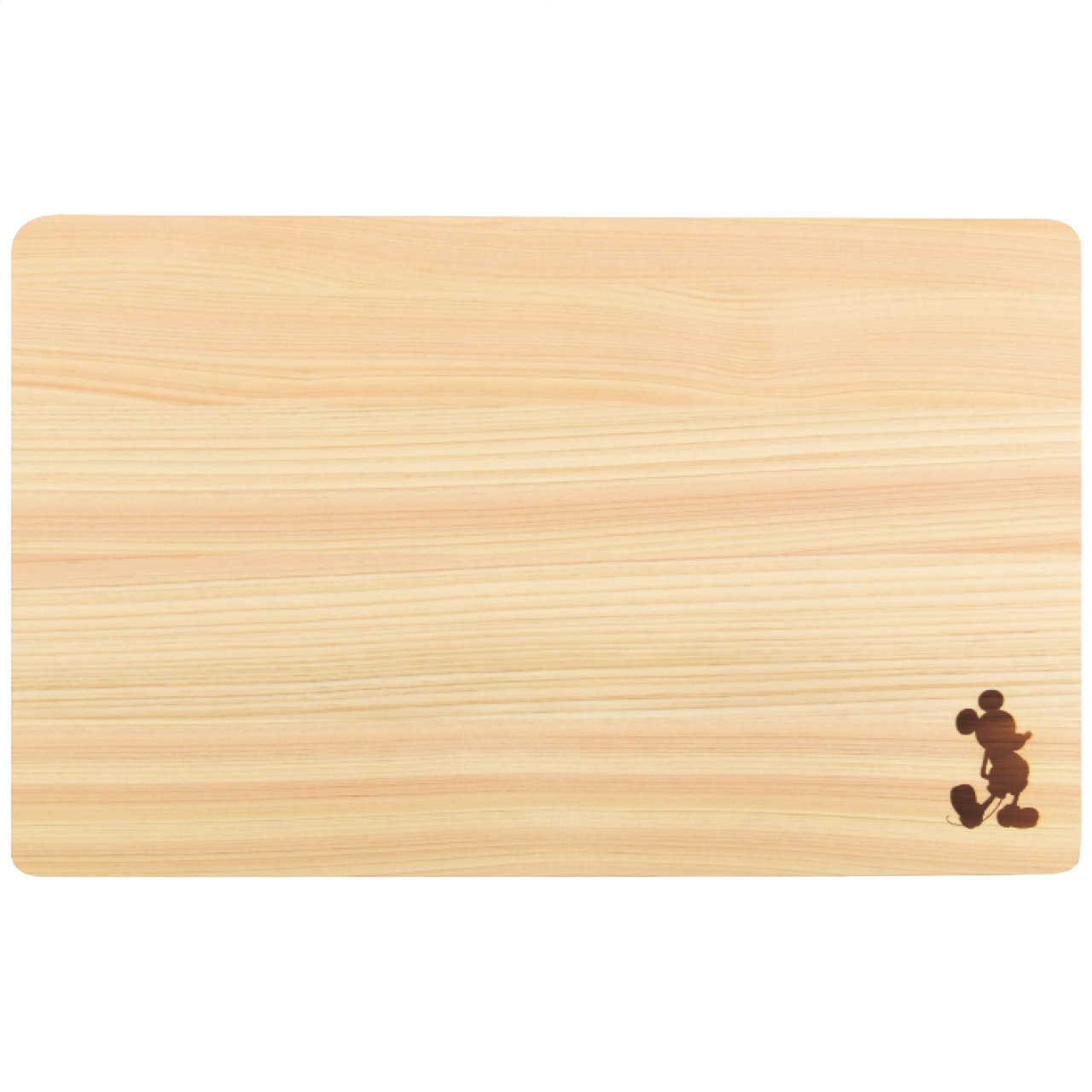 みんな大好きミッキーマウスが表裏にデザインされたひのきのまな板。包丁の刃に優しい天然木(ひのき)を使用しています。