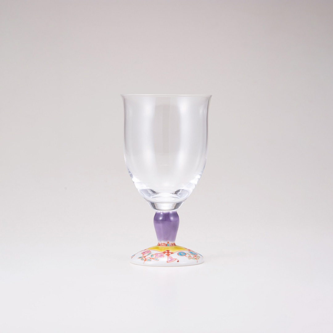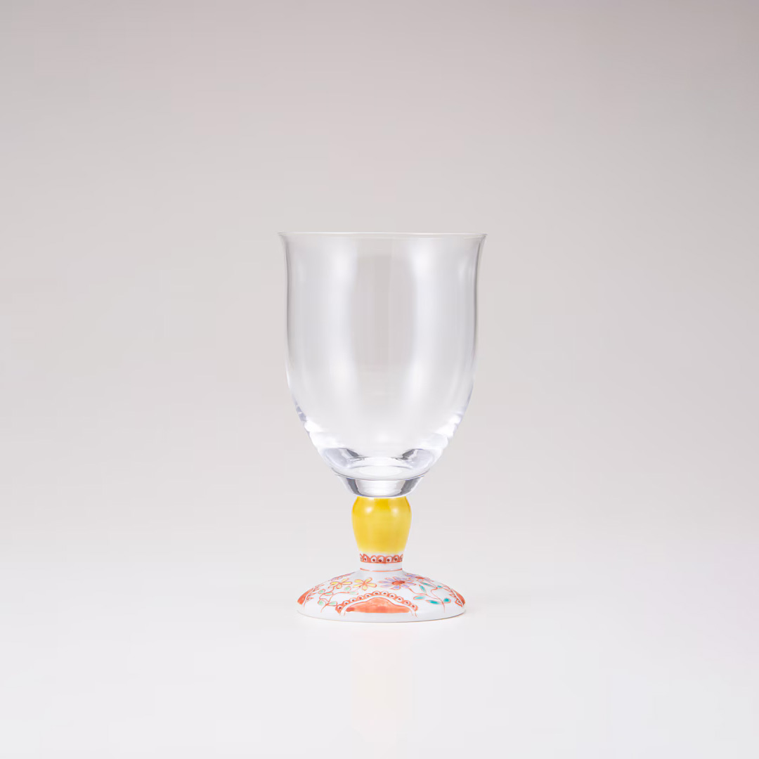 大口注文・法人のお問い合わせはこちら九谷焼と手作り吹き硝子を融合して完成した「九谷和グラス」のフリーグラス大です。 容量約280mlとたっぷり入るので、様々なアイスドリンクにお使いいただけます。脚部分のデザインは九谷焼の名工と謳われた初代文吉の色絵技術を受け継ぎ、明るい色彩、可愛らしい上絵付で人気の銀舟さんです。