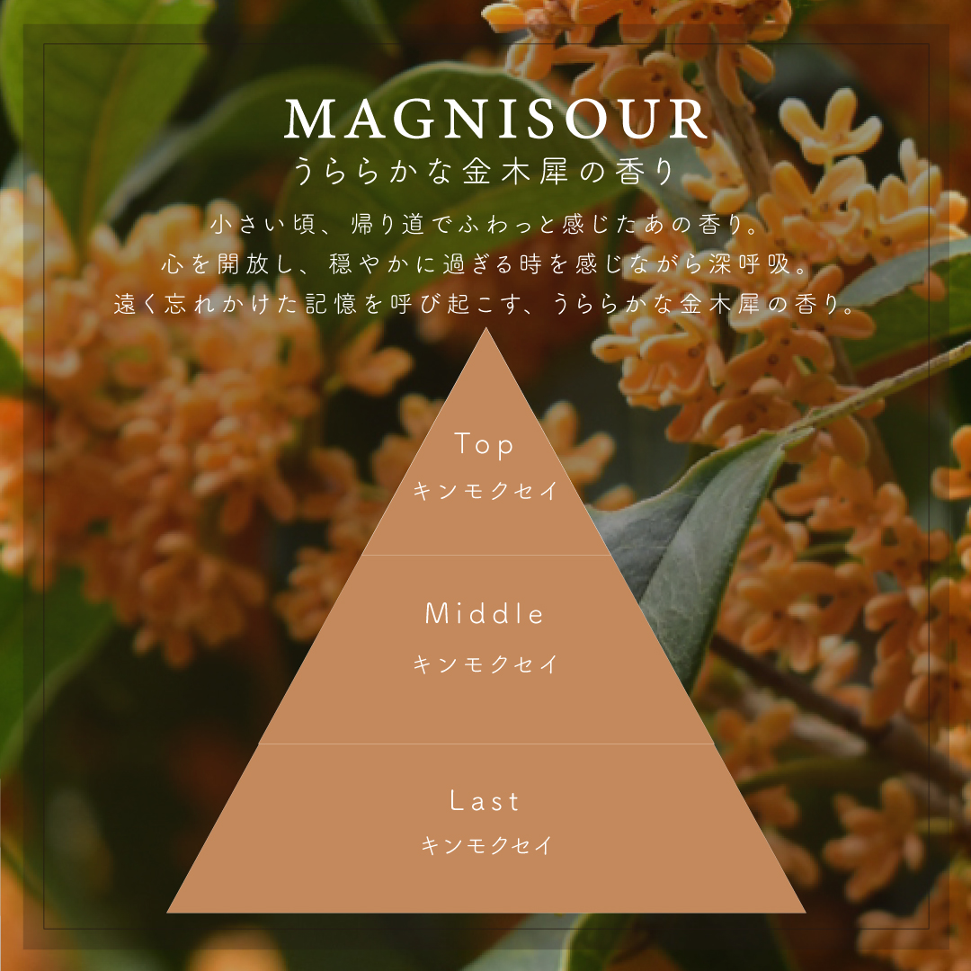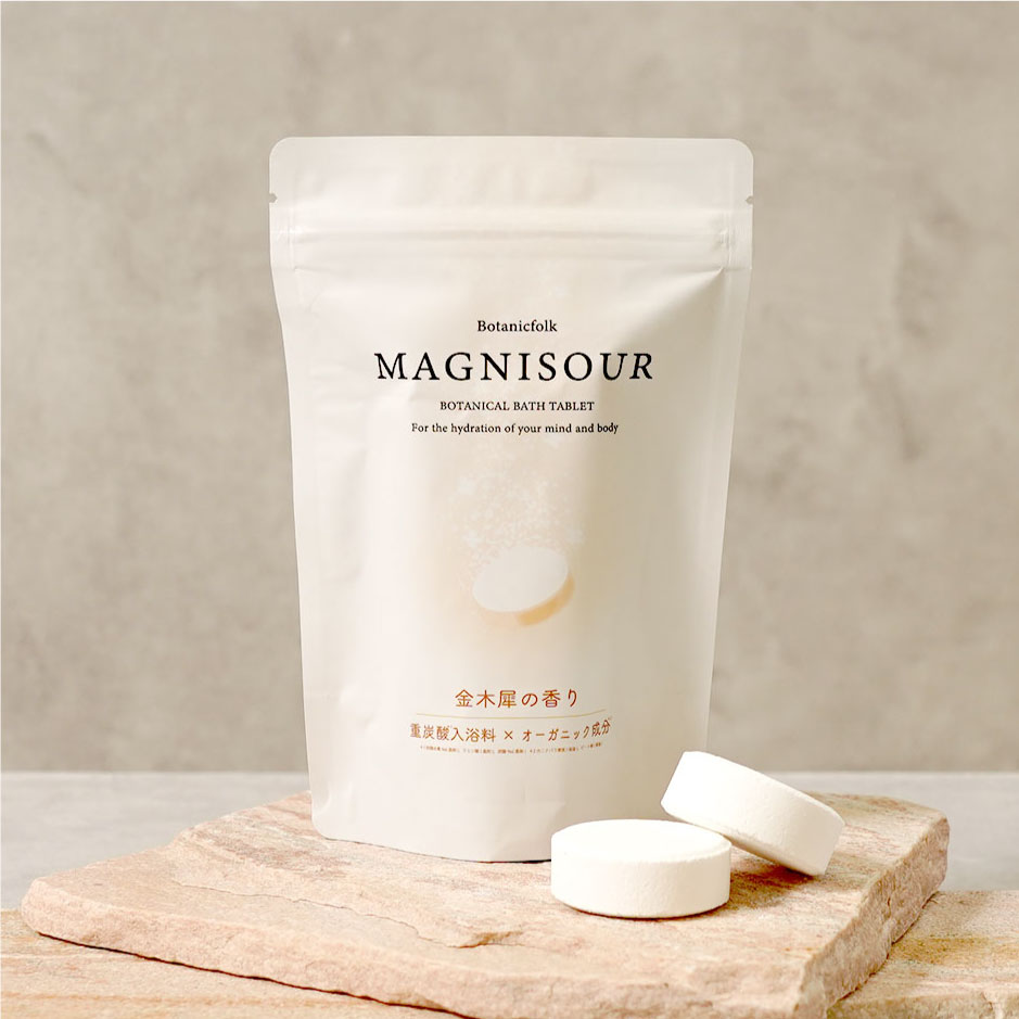 大口注文・法人のお問い合わせはこちら「まさに金木犀の香り」と大好評のマニスールシリーズから重炭酸入浴料*の実現とオーガニック成分**を配合した金木犀の香りの発泡入浴タブレットが登場しました。 *炭酸水素Na(基材)、クエン酸(基材)、炭酸Na(基材) **カニナバラ果実(保湿)、ビート根(保湿) 重炭酸とは炭酸水素イオン(重炭酸イオン)のことで、炭酸水素ナトリウム(重曹)がお湯に溶けると重炭酸イオンが生成します。 この時お湯は弱アルカリ性になり、みずみずしい肌へと導くといわれています。