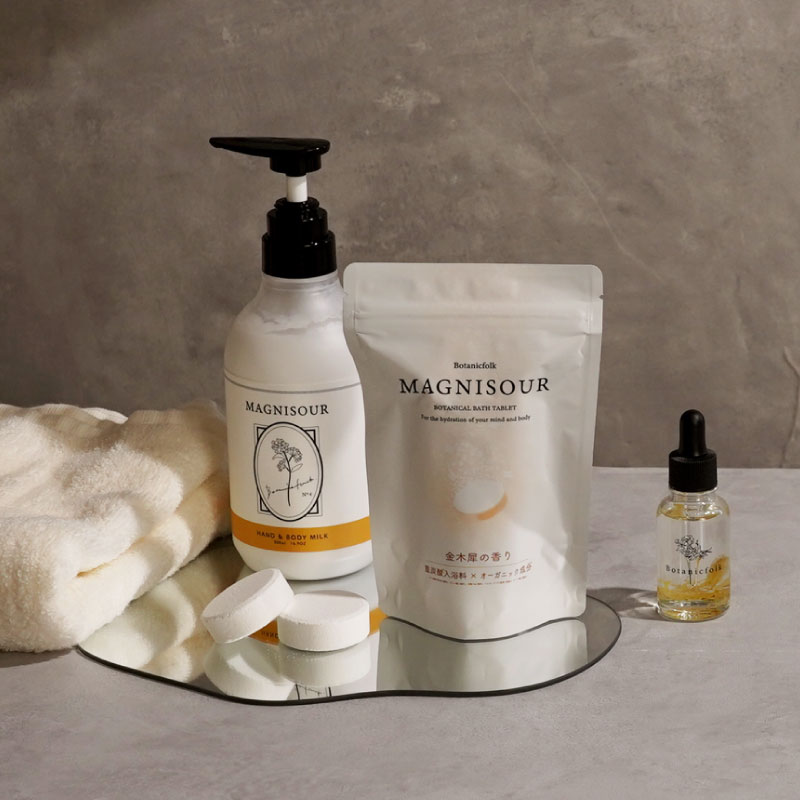 植物由来成分を中心に「肌にやさしく」を大切にしてつくった入浴タブレットは毎日を頑張る大切な方へのギフトにも。 金木犀の香りが好きな方やバスギフトをお探しの方にオススメです◎