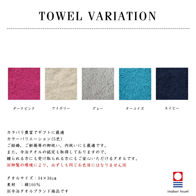 ご注文時のオプションにて、今治タオルの「カラー」と「名入れ刺繍」をご指定いただけます。