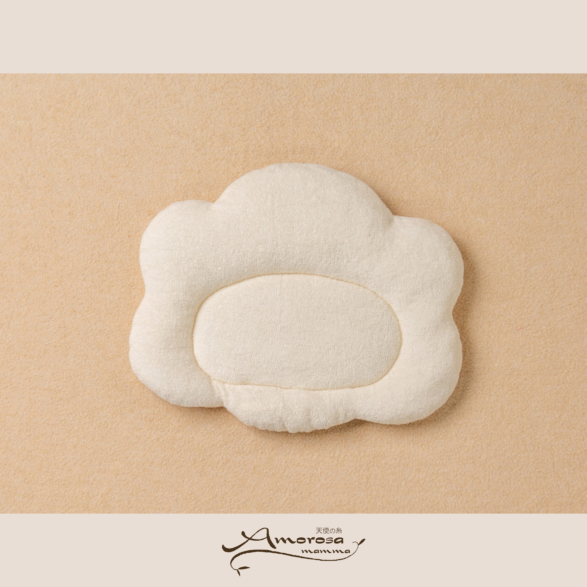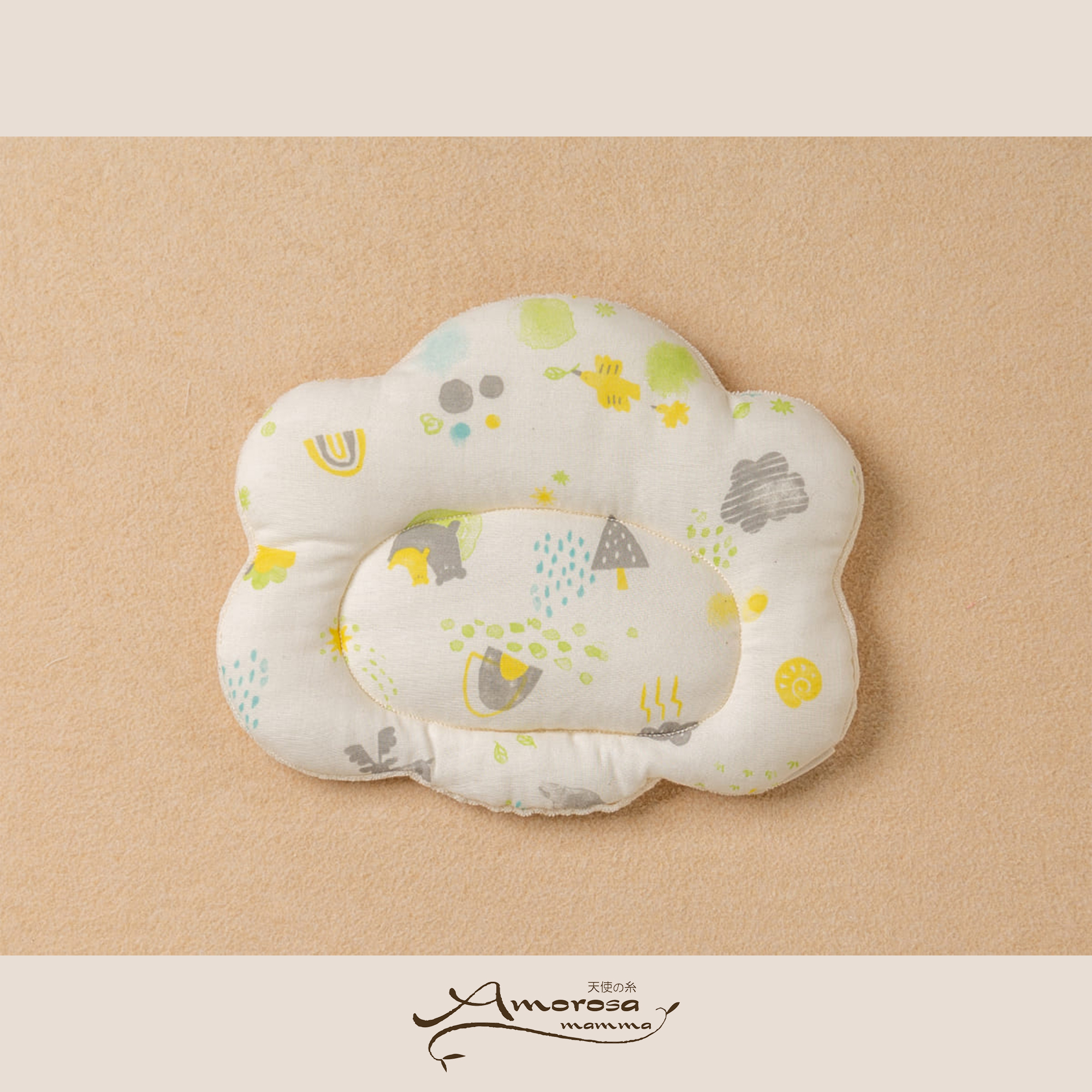 くもの形のふわふわまくらは吸水性抜群のダブルガーゼの生地で、よく汗をかくあかちゃんもぐっすりねむれます。