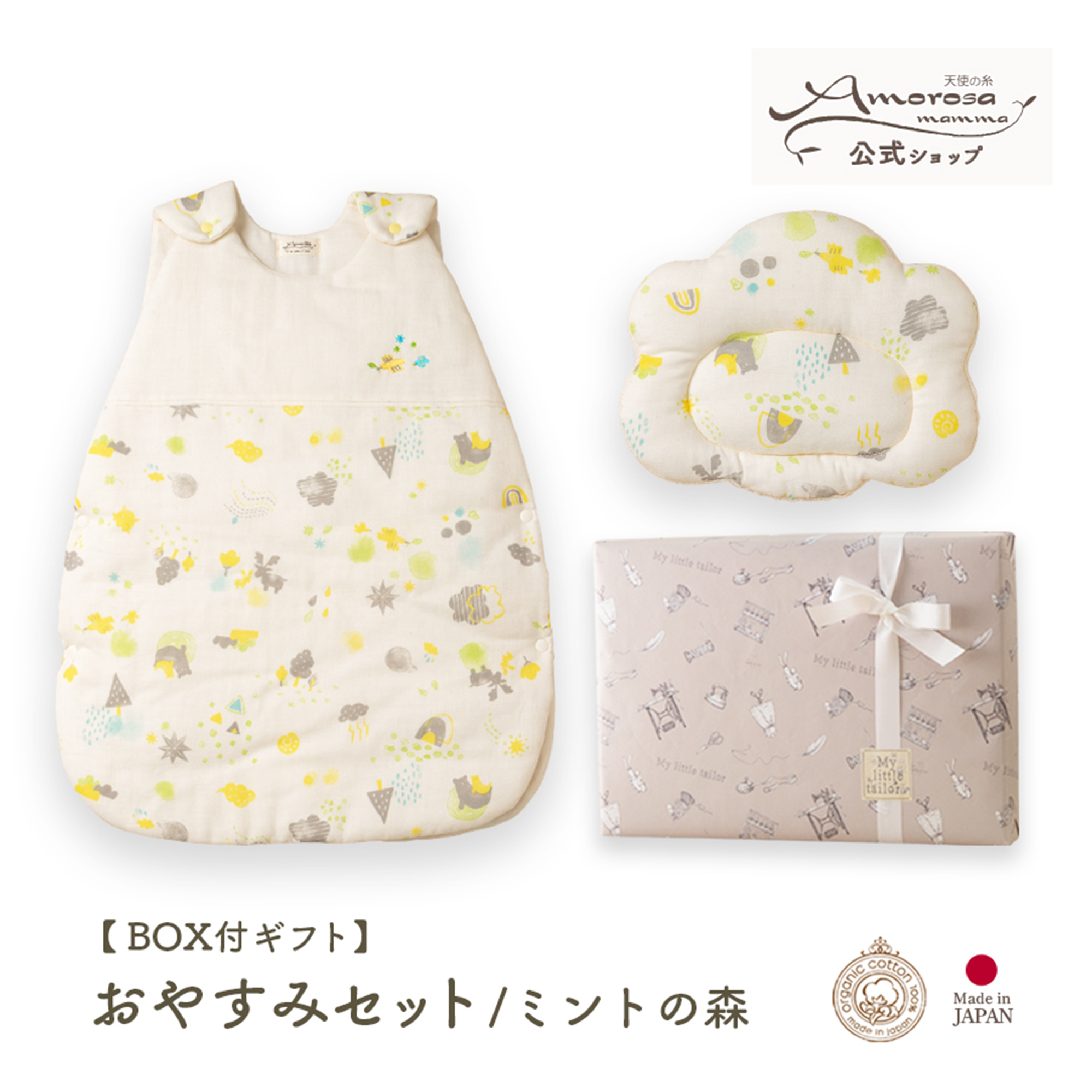 | 素材 | [スリーパー] オーガニックコットン100% 表:ダブルガーゼ(プリント柄) 裏:ダブルガーゼ(無地) 中綿 ポリエステル100% [まくら] オーガニックコットン100% 表 :ダブルガーゼ(プリント柄) 裏 :シンカーパイル 中綿 ポリエステル100% |