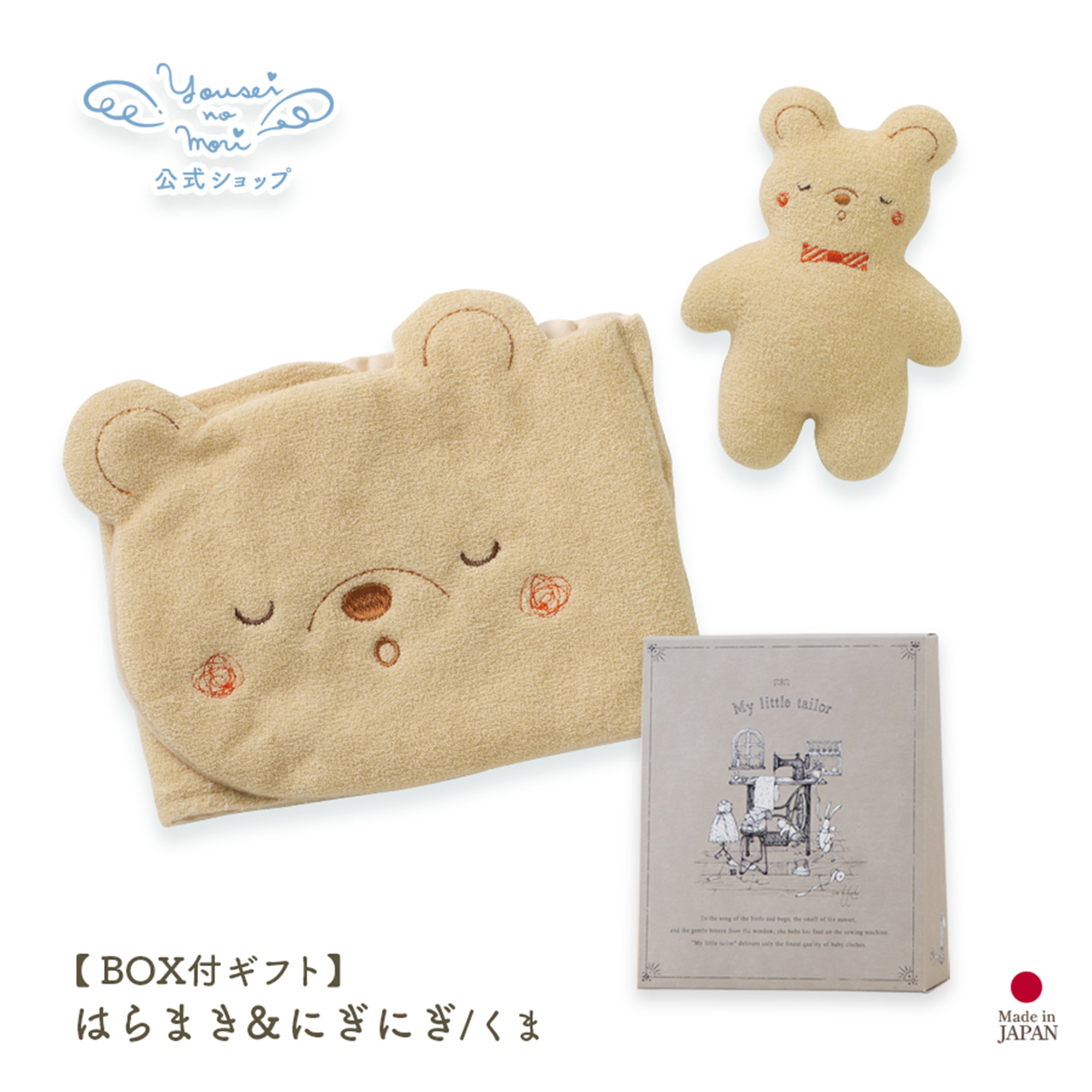 | 素材 | [はらまき/くま・うさぎ・ぞう] 綿100%表/片面パイル 裏/キャンブリック 中綿/ポリエステル100% 裏/フレンチパイル(接着部分) [にぎにぎ/くま・うさぎ・ぞう] 綿100%片面パイル 中綿/ポリエステル100% 鈴入り |