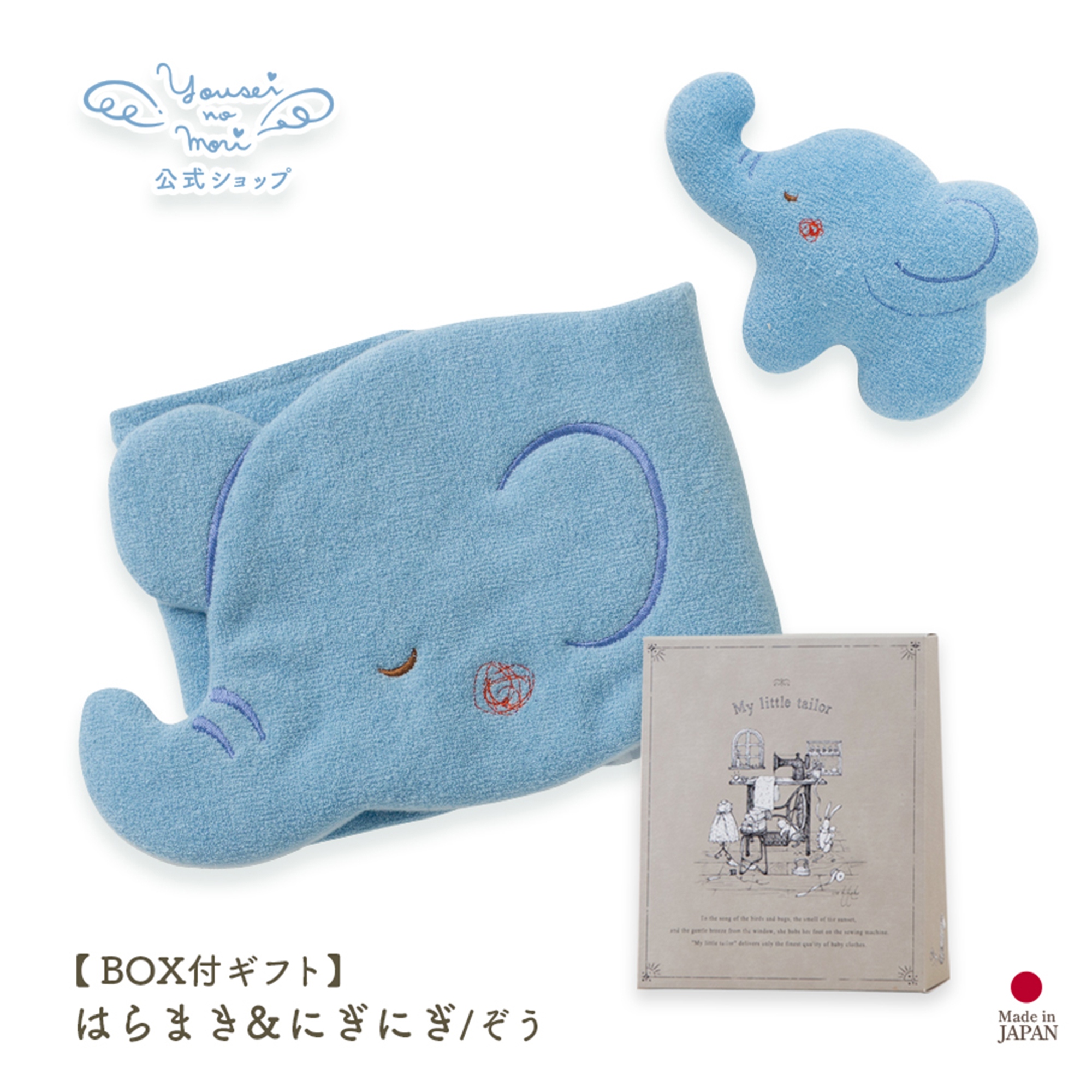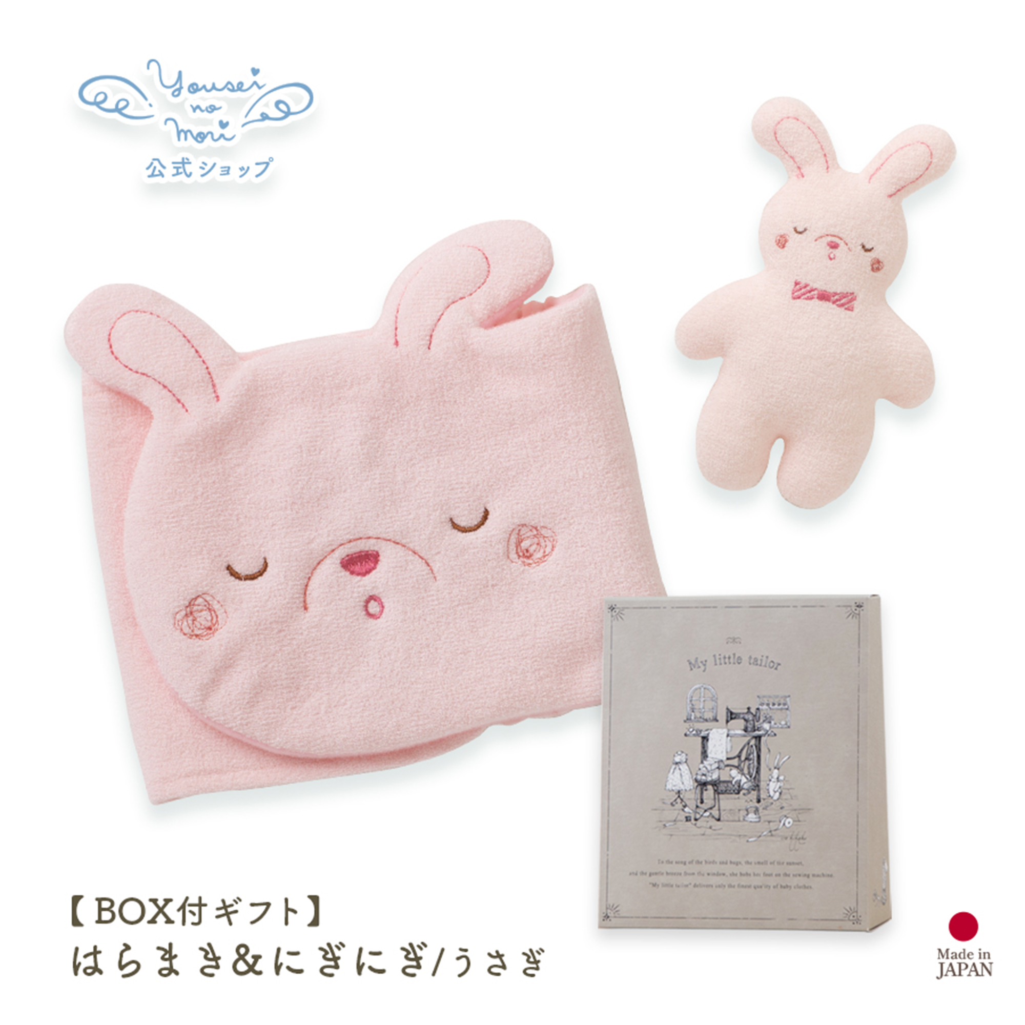 くま・うさぎ・ぞうの中からお好きなどうぶつが選べる「はらまき」と「にぎにぎ」のギフトセットです。おしゃれなギフトボックスに入れてお届けいたします。
