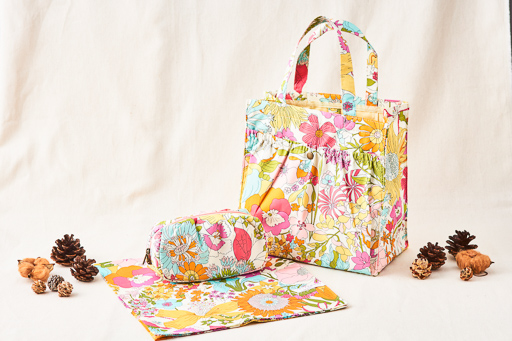 大口注文・法人のお問い合わせはこちら【INTERMODE Using LIBERTY ART FABRICS】のハンカチ、ポーチ、ランチトートのタンプ限定3点セットです。 機能性の高いランチトートに、ハンカチ、ポーチは肌触りも良く普段使いに便利です。
